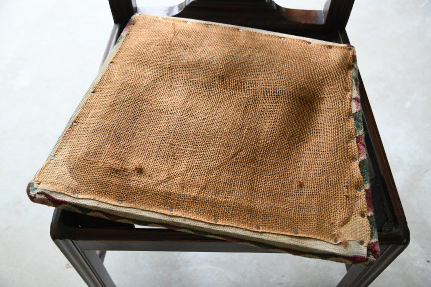 6 Mahogany Chippendale Style Dining Chairs. Set 6 Chippendale style dining chairs, mahogany frame with pierced vase back splat, upholstered drop in seat pad on square legs