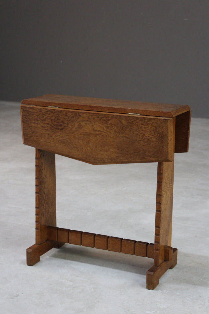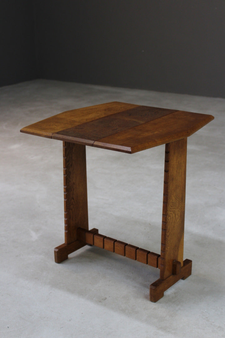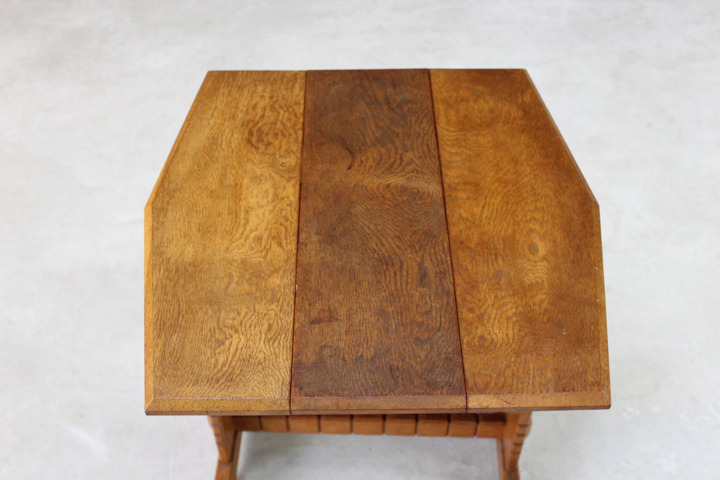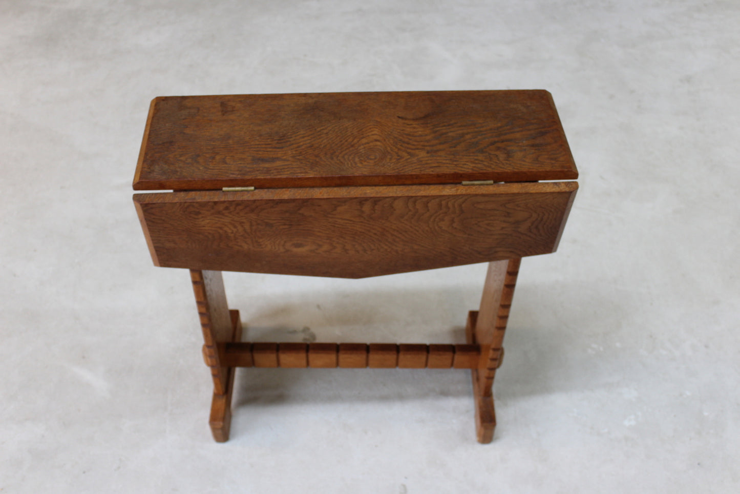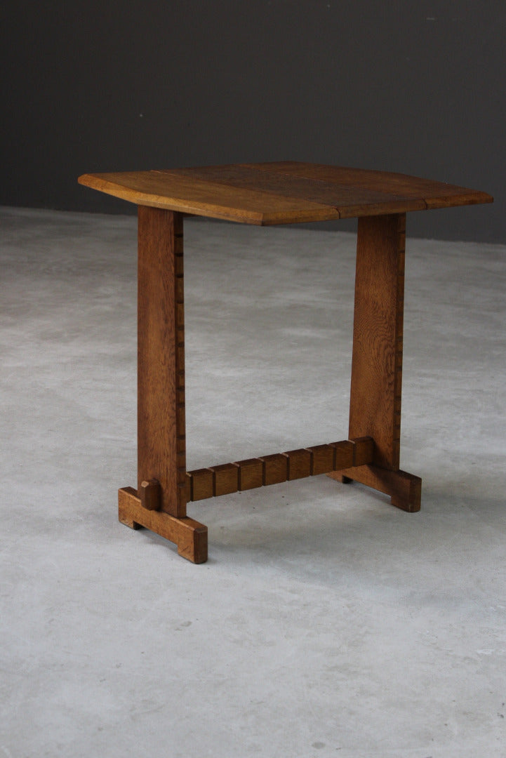 Early 20th Century ash drop leaf side table. Solid ash drop leaf side table with swivel drop leaf top on pegged supports and joining stretcher.