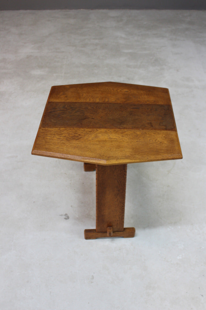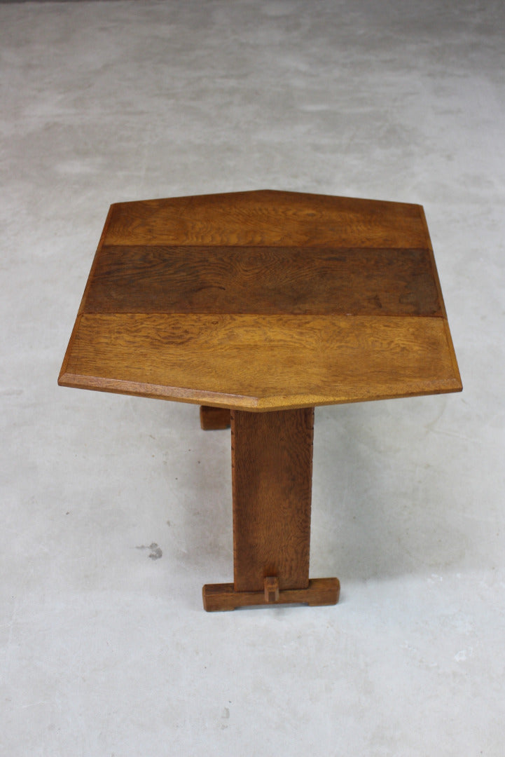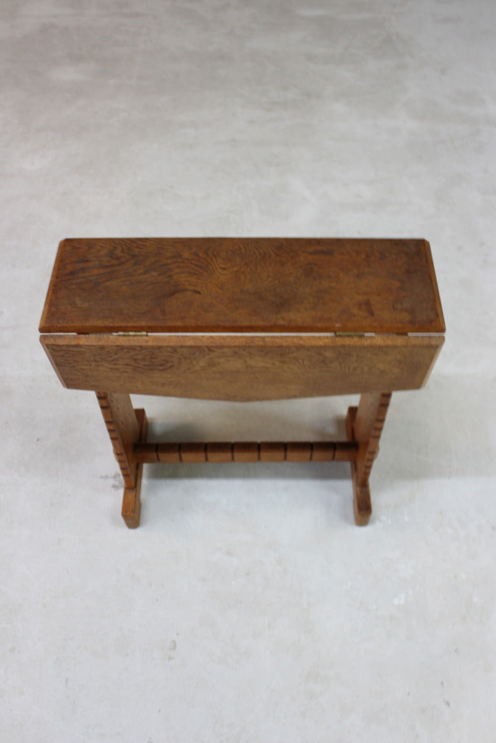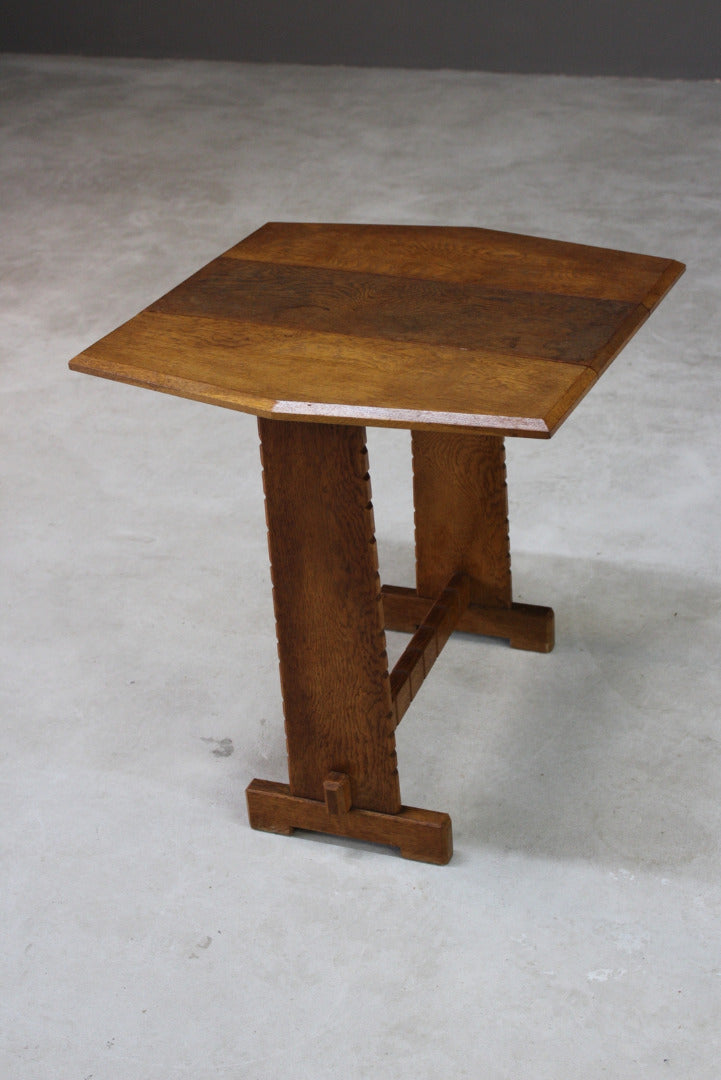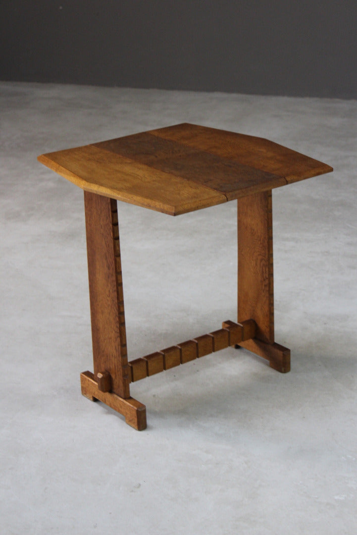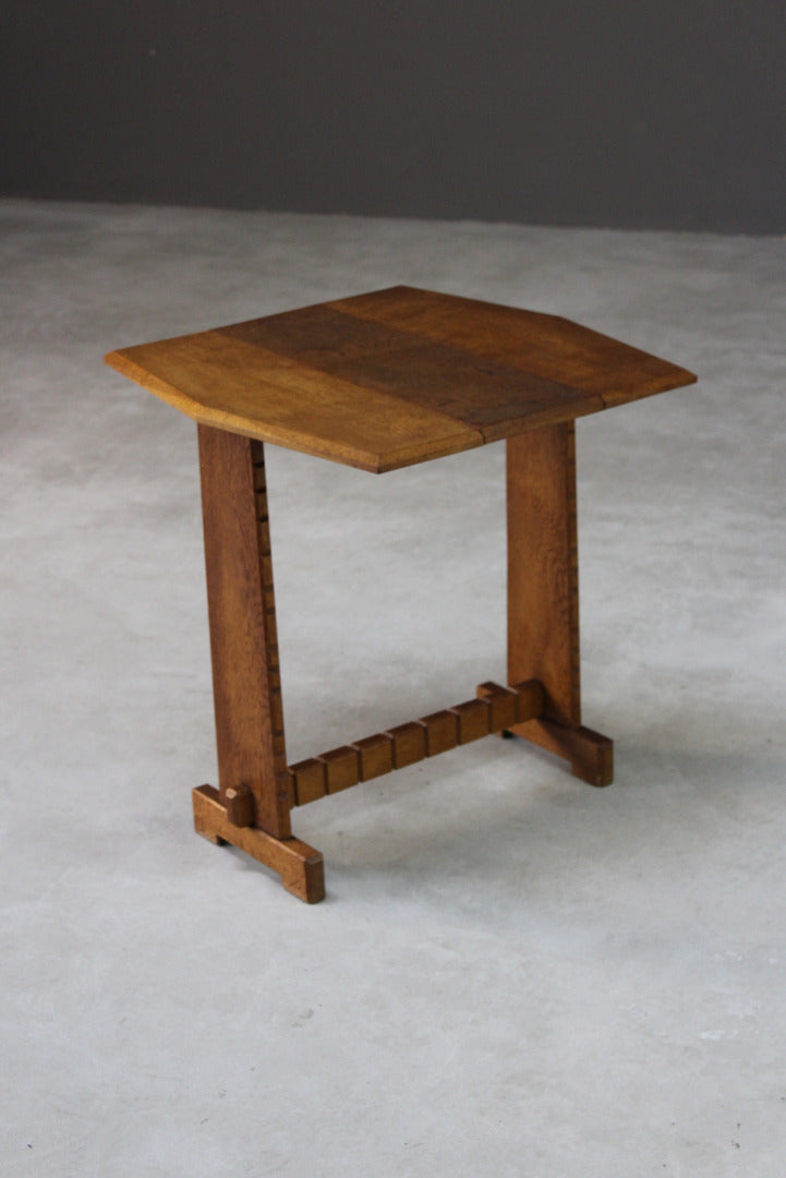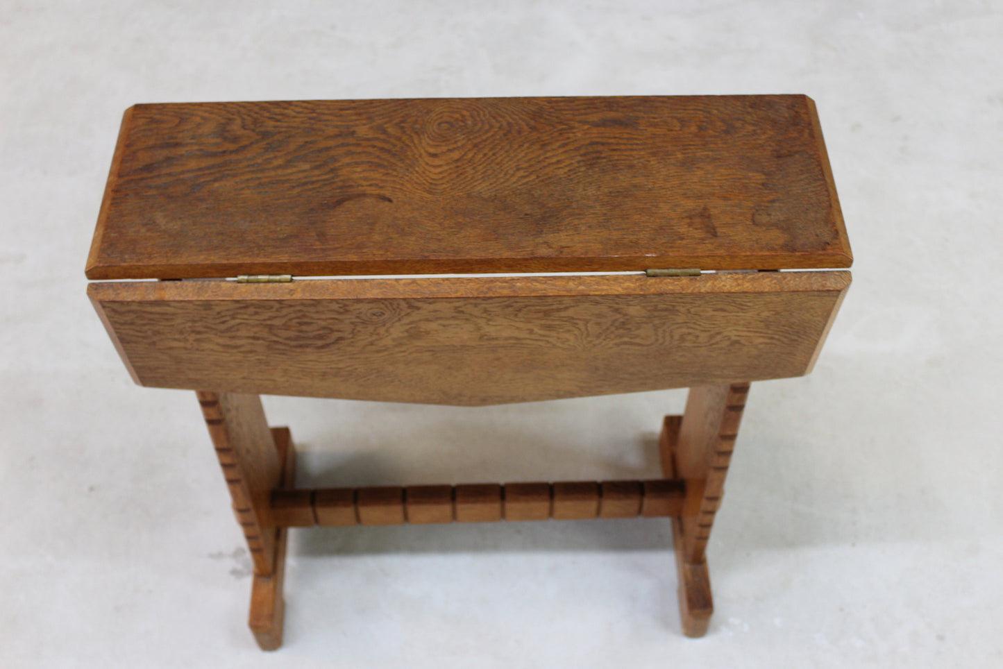Early 20th Century ash drop leaf side table. Solid ash drop leaf side table with swivel drop leaf top on pegged supports and joining stretcher.