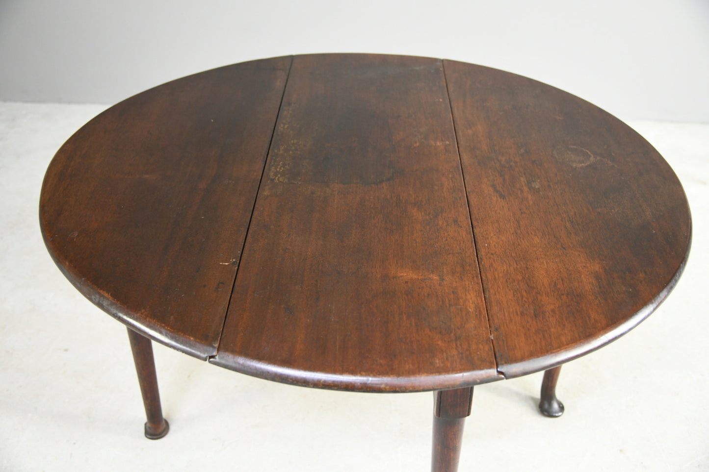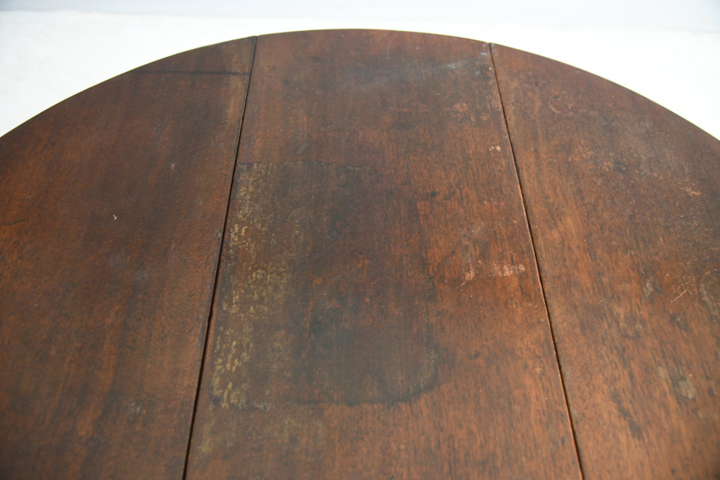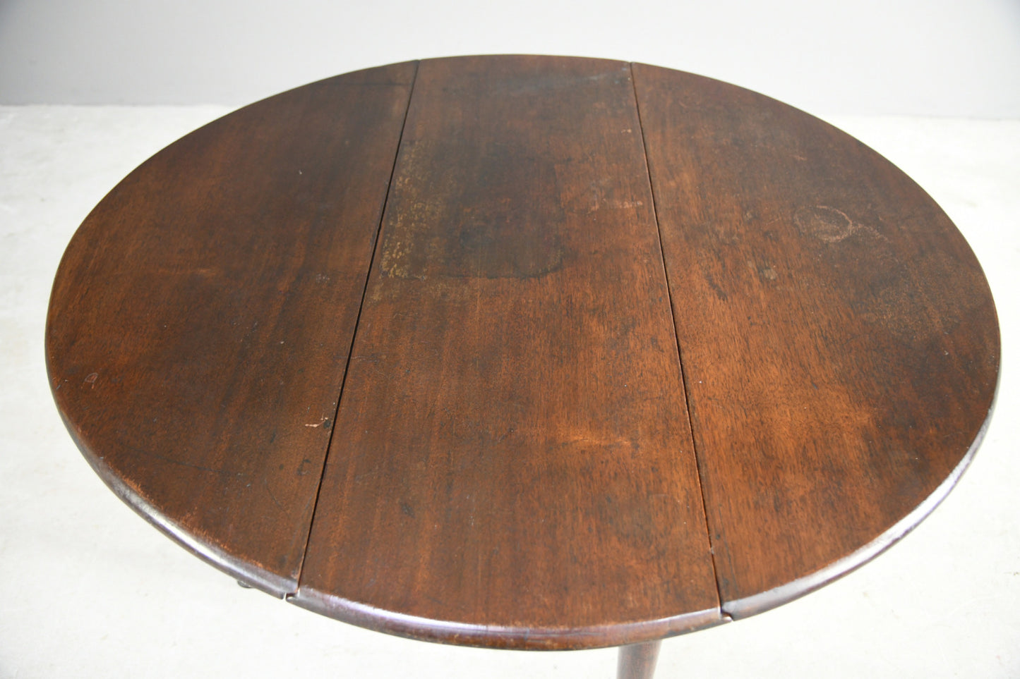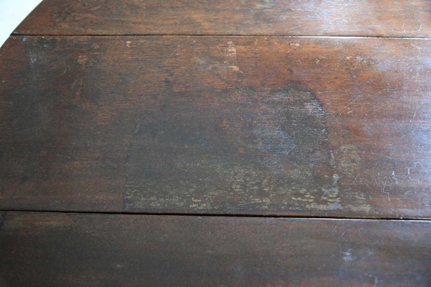 Condition: Solid and sturdy condition, water marks and patches to the finish on the top, small repair to the leg - please refer to the photos.