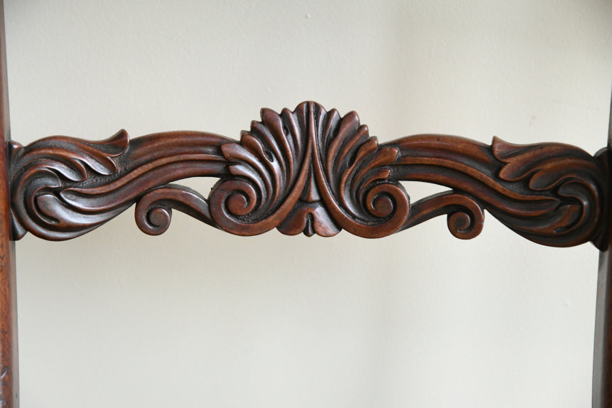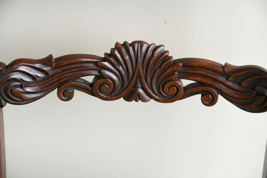 4 Antique 19th Century Bar Back Dining Chairs. Set 4 antique solid mahogany dining chairs with bar back and upholstered webbed seats on turned legs