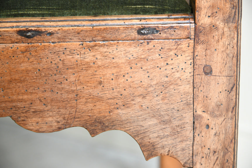 Antique Georgian Walnut Corner Chair. Antique George III walnut corner chair with shaped back rail and pierced back splats, drop in seat pad on square legs