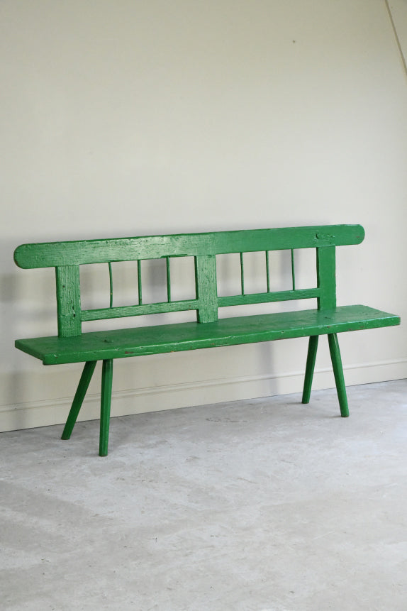 Antique Green Painted Pine European Bench
