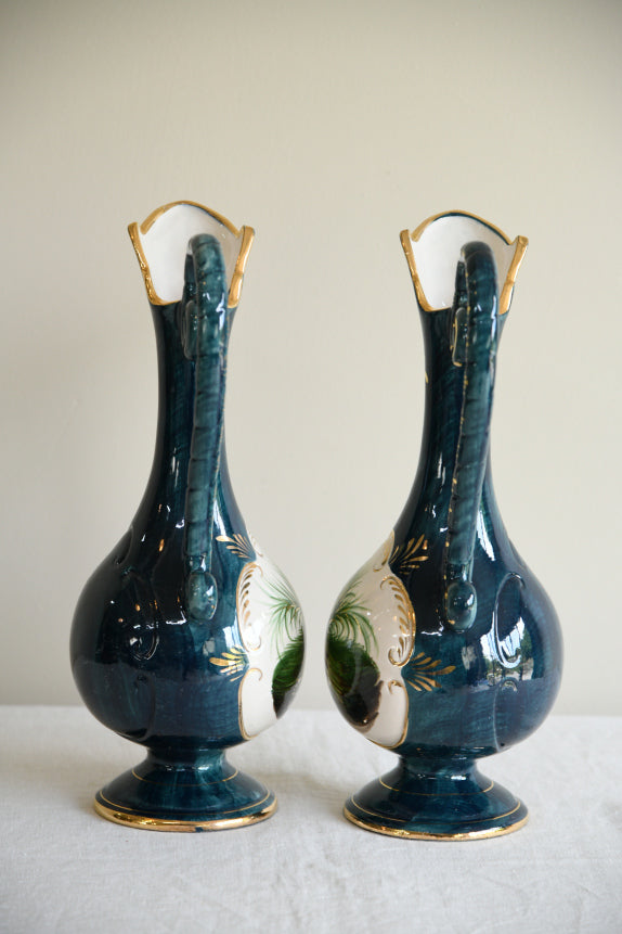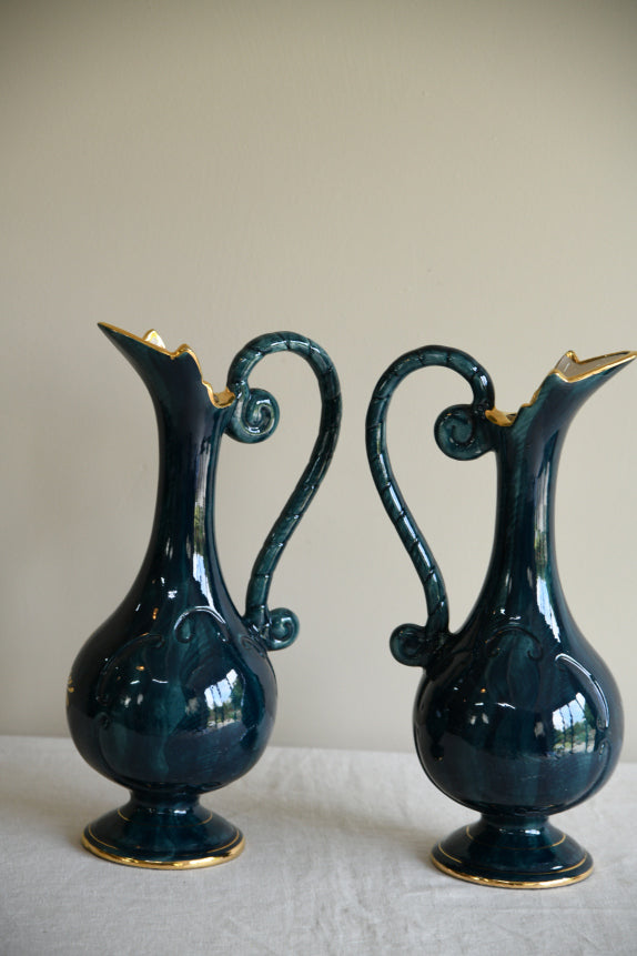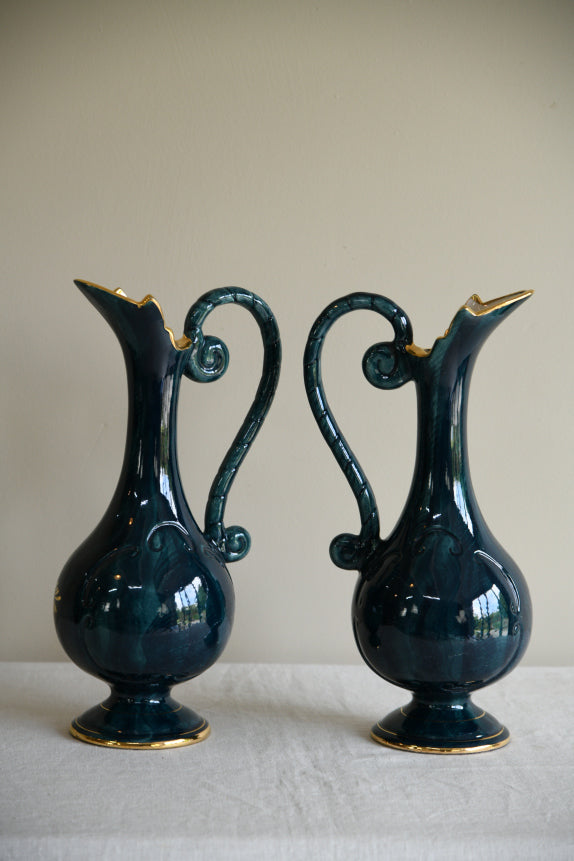 Pair H. Bequet Quaregnon Belgium Ceramic Pitcher