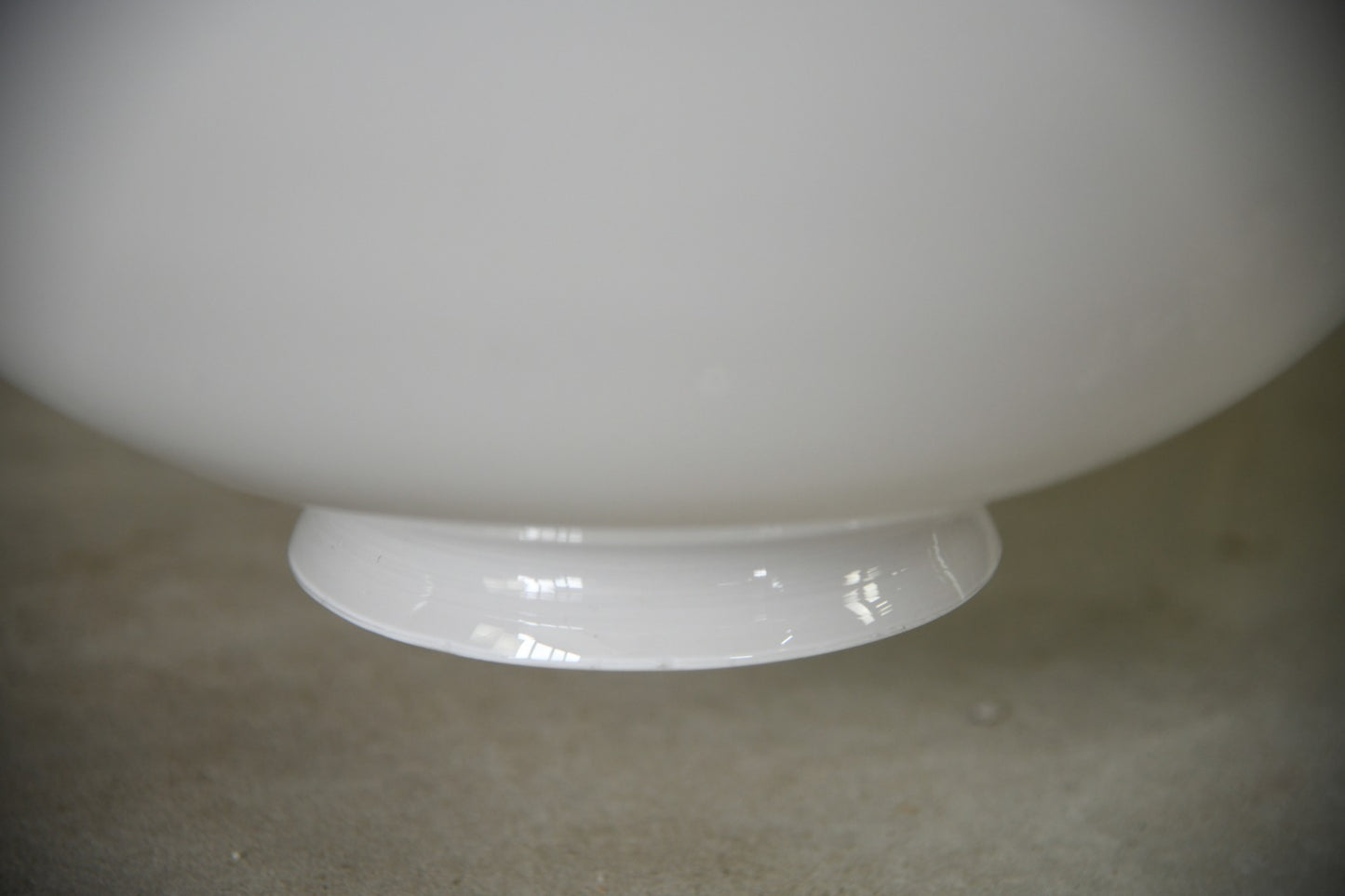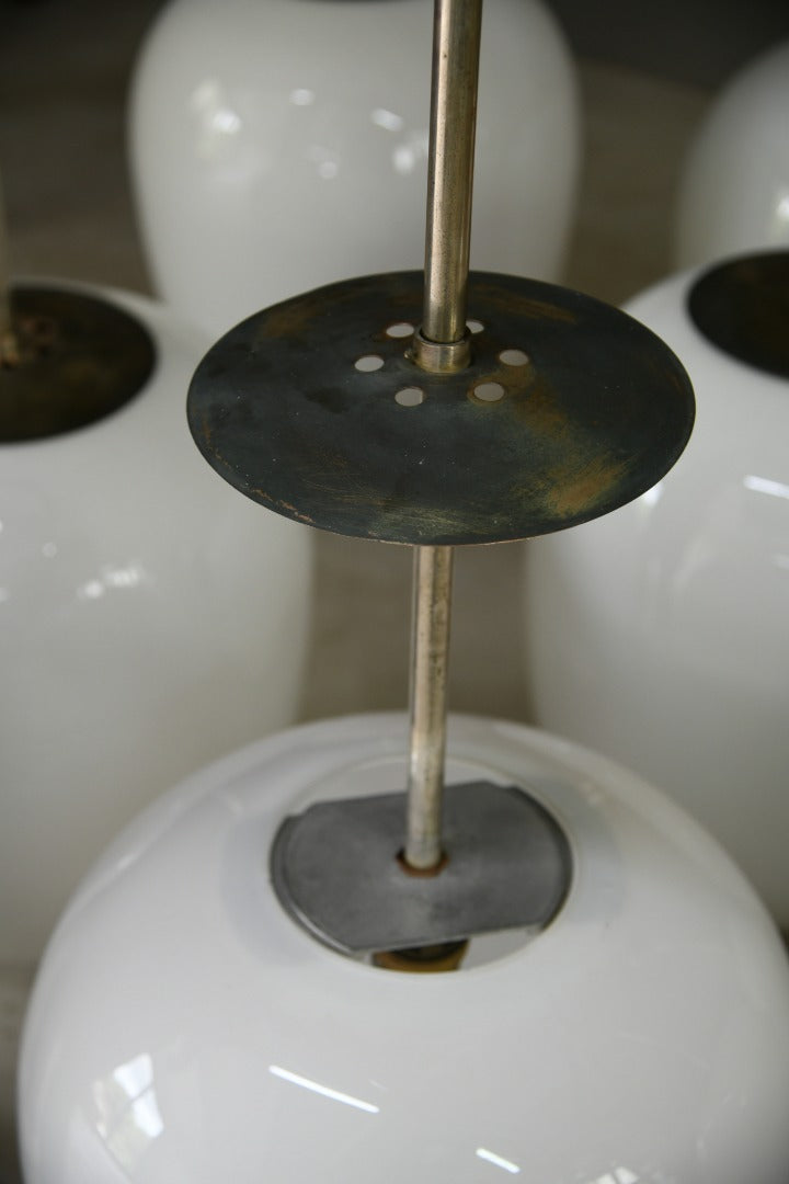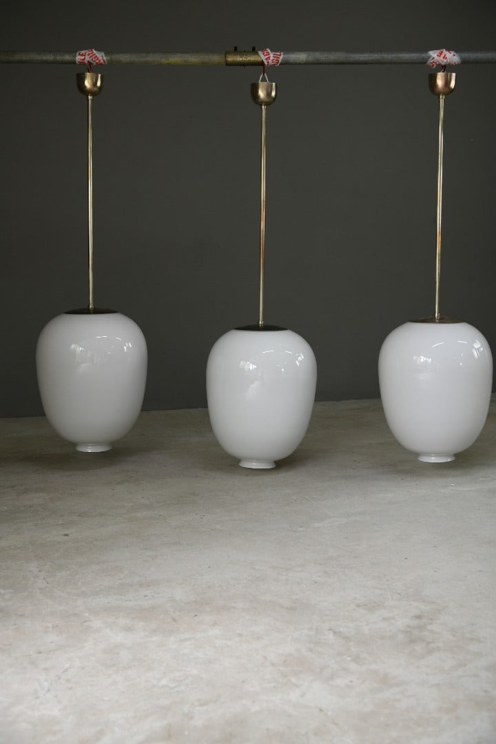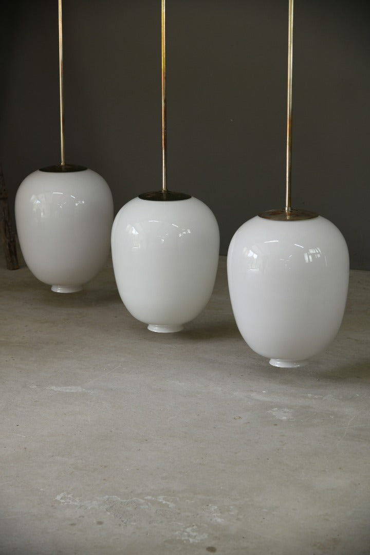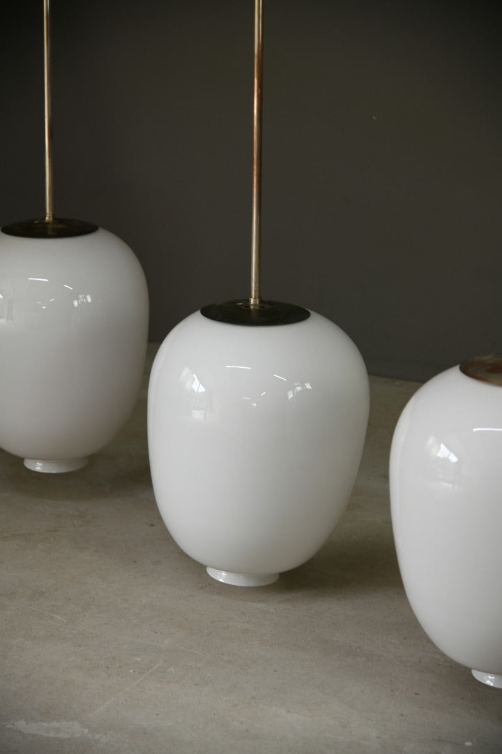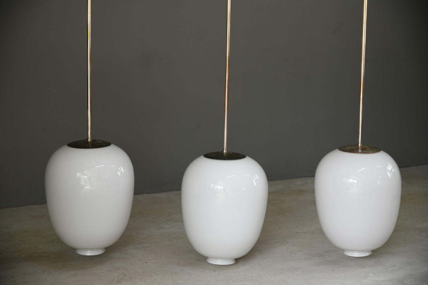 Single Mid Century Murano Stilnovo Style Pendant Lamp. Single Mid Century large ceiling pendant, chromed copper ceiling rose with stright hanging bar and gallery, large white glass shade. Original vintage bulb holder which takes a large Eddison type bulb, this can be replaced if preferred. I have 7 lamps available.