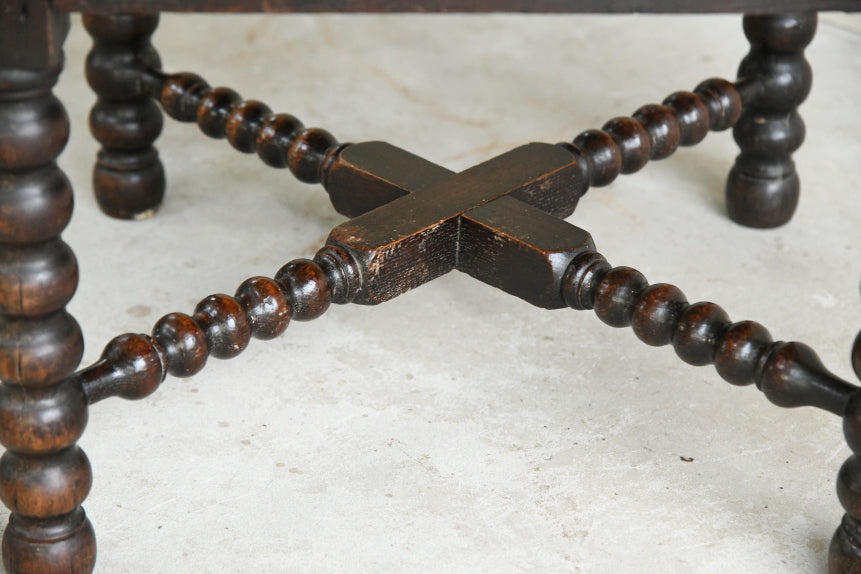 Antique Carved Oak Corner Chair. 19th Century oak corner chair with carved back rail and drop in seat on bobbin turned supports