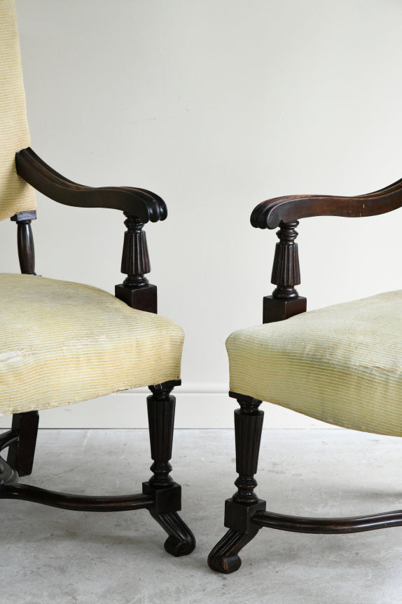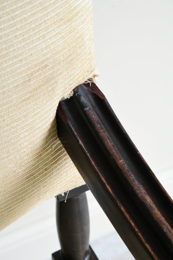 Condition: Good solid condition, for reupholstery, damage to the wood on the end of one arm - please refer to the photos