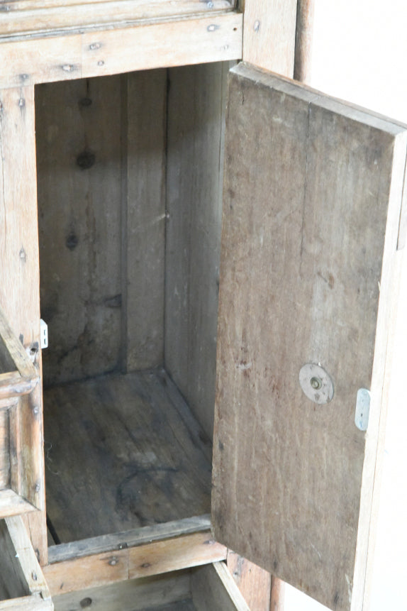 Condition: Solid condition, rustic finish, some odd handles, evidence of woodworm, lots of age and signs of use, please note the dresser is one piece and does not break down for transportation