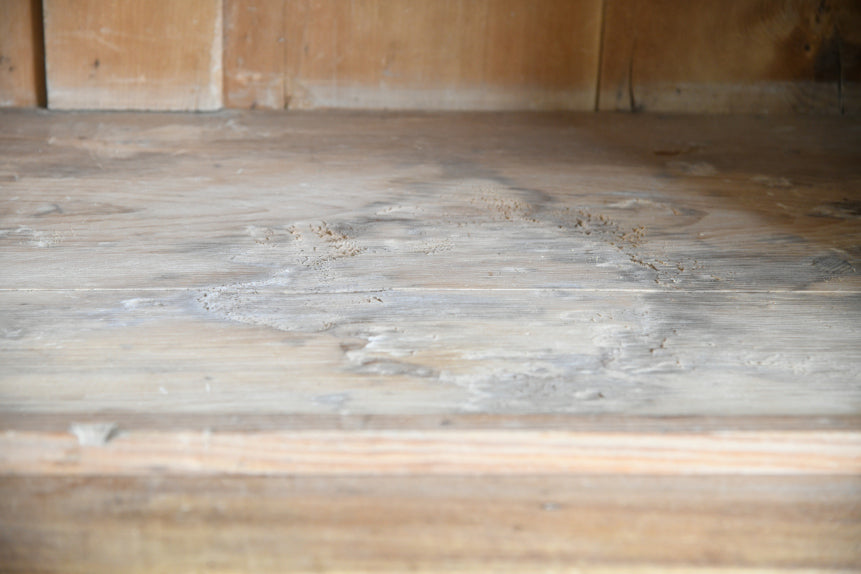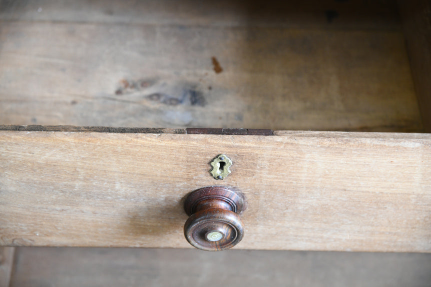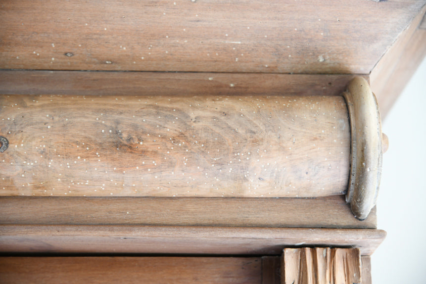Condition: Lots of historic woodworm which has been treated and filled - please refer to the photos, some faint watermarks, later lock to the top cupboard, some surface damage to the internal shelves.
