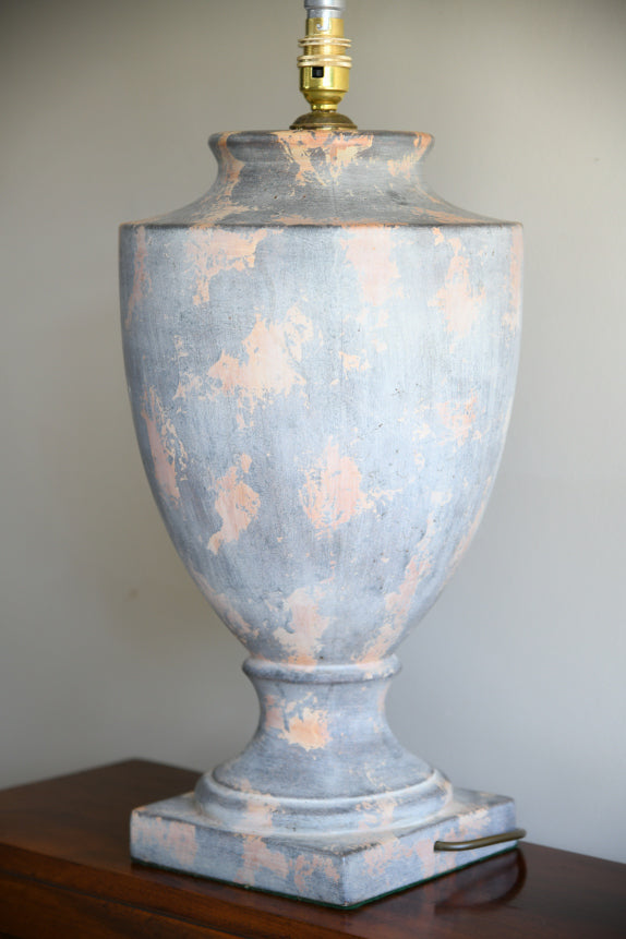 Ceramic Painted Urn Table Lamp. Late 20th Century painted ceramic table lamp on square base