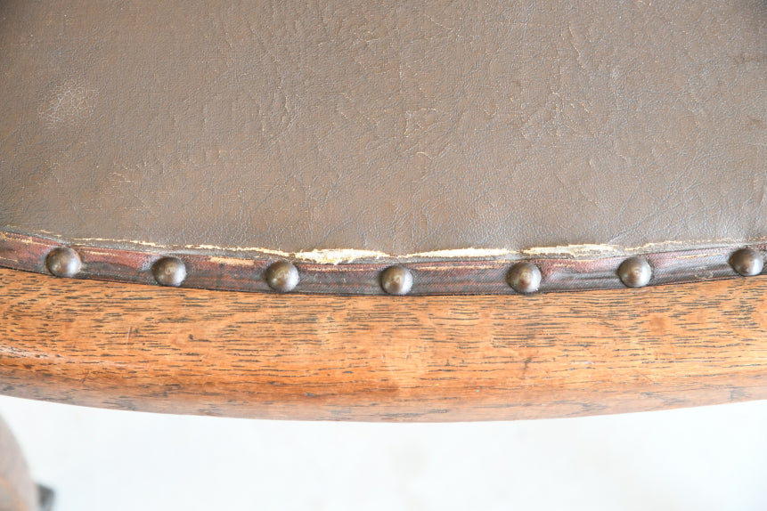 Early 20th Century Globe Wernicke Oak Office Chair. Early 20t Century oak desk chair with curved back and arms, padded rexine seat on cabriole legs and black castors
