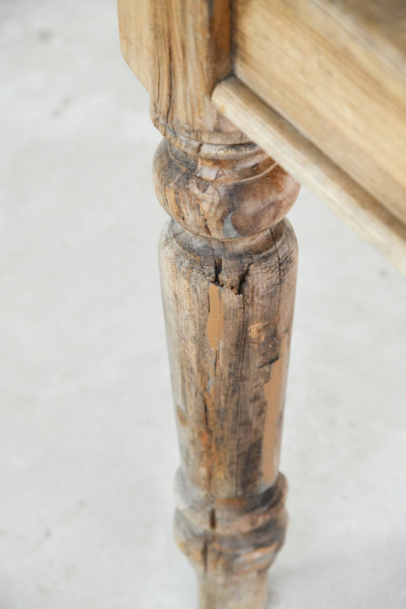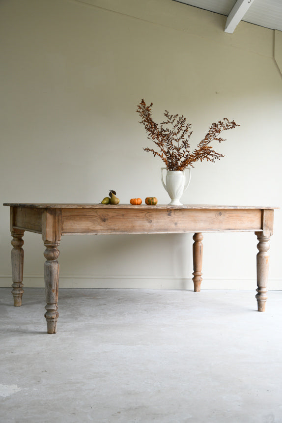 Large Victorian Kitchen Table. Antique Victorian kitchen table, solid pine plank top on turned legs