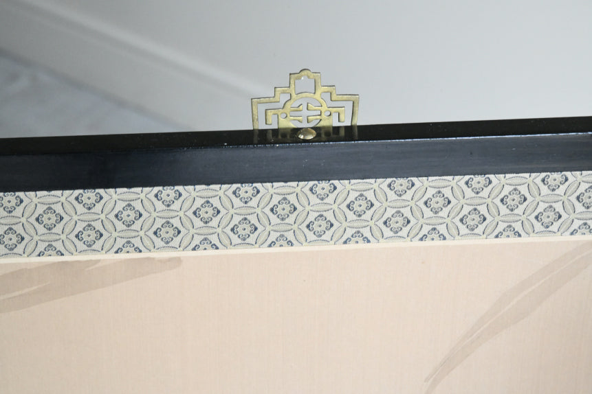 Oriental Folding Screen. Vintage folding screen, four panels with hand painted decoration of kingfishers and peonies