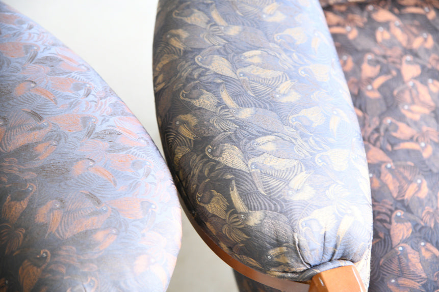 Condition: Good solid condition, some fading & varation in colour to the upholstery, fire labels to the underside