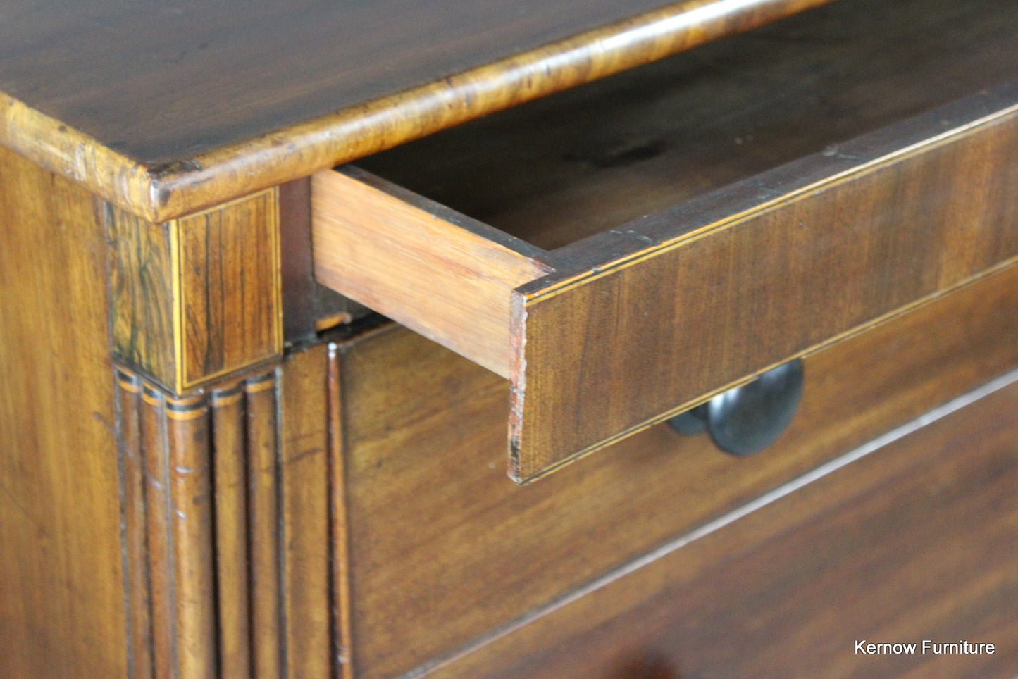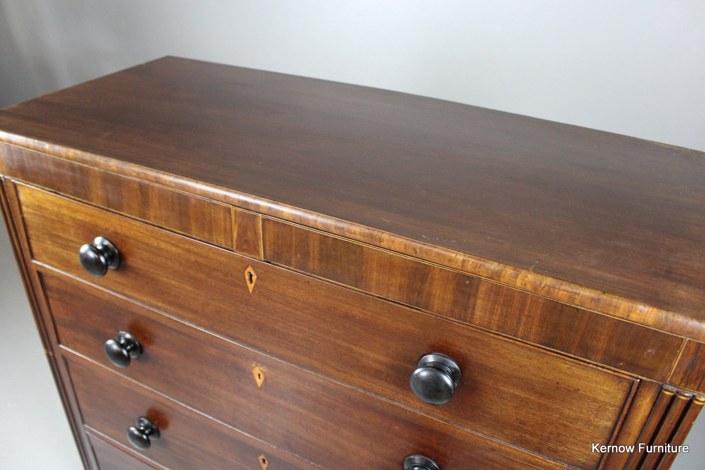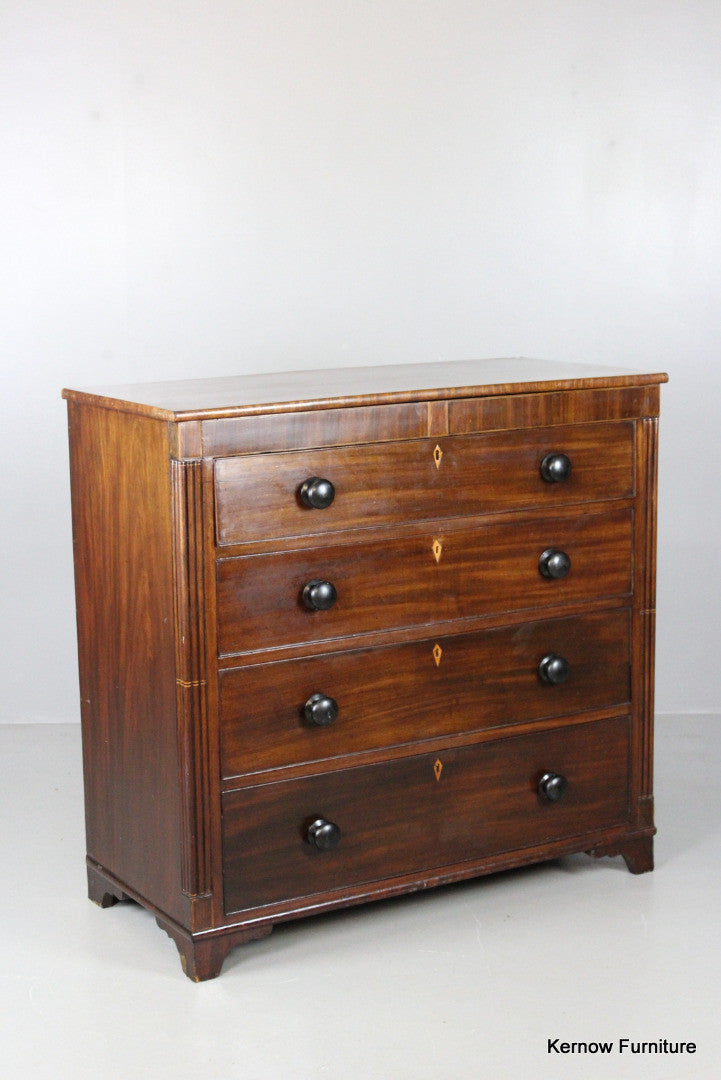 Antique early 19th Century mahogany chest of drawers, good quality, 2 short over 3 long drawers with hidden frieze drawer. Reeded columns with rosewood capital.