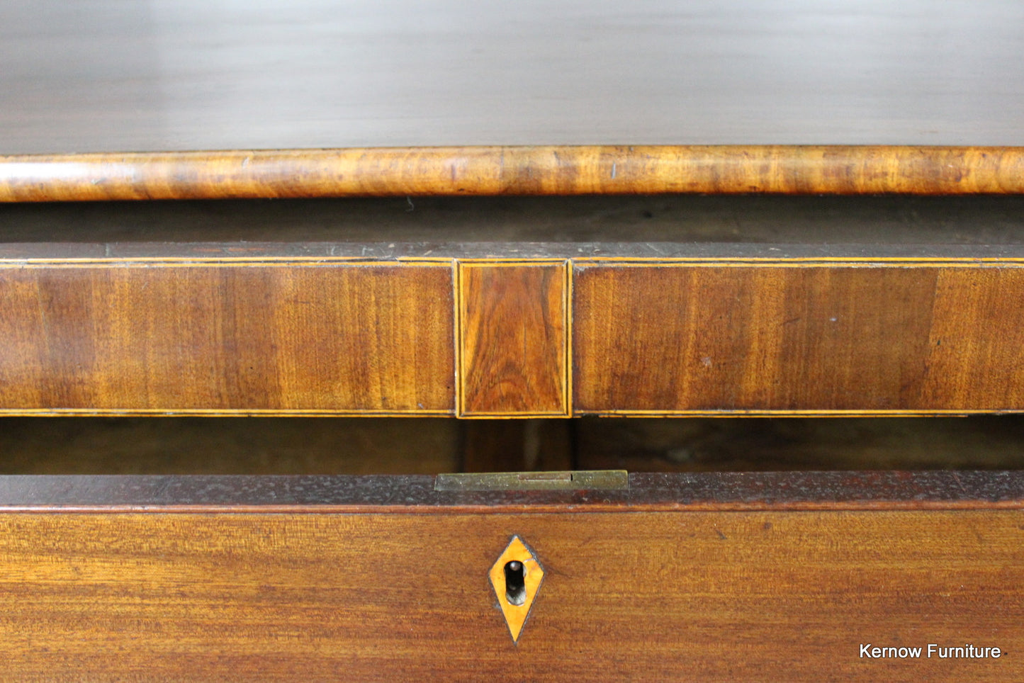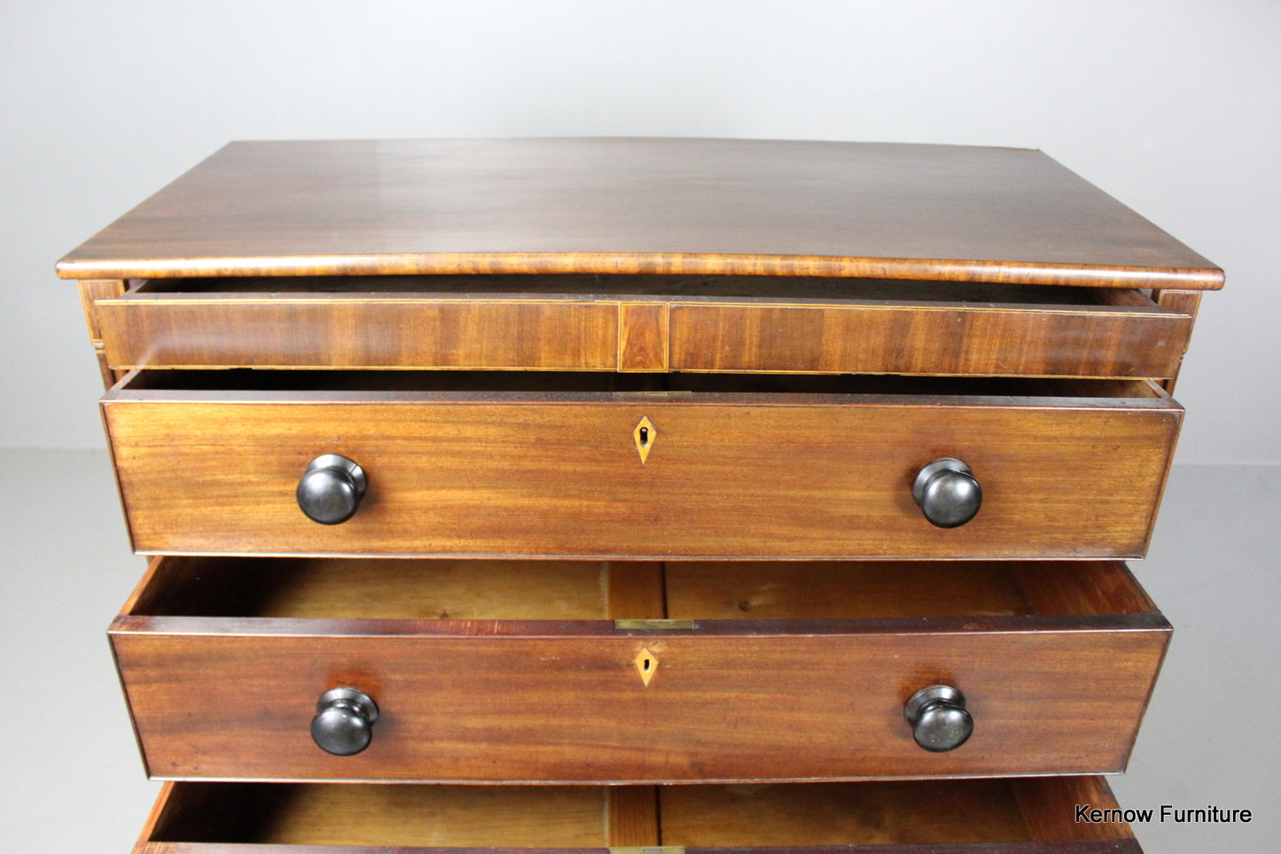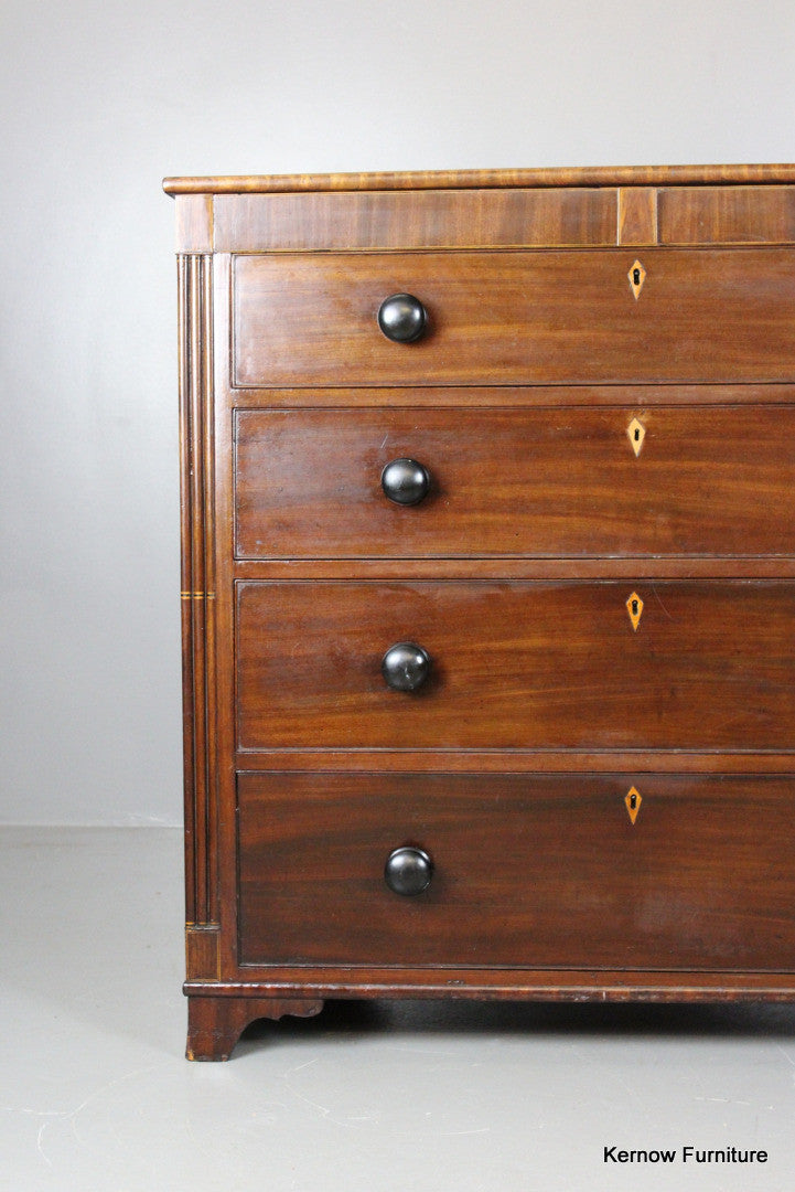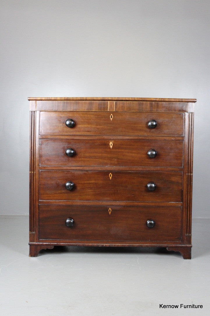 Antique early 19th Century mahogany chest of drawers, good quality, 2 short over 3 long drawers with hidden frieze drawer. Reeded columns with rosewood capital.