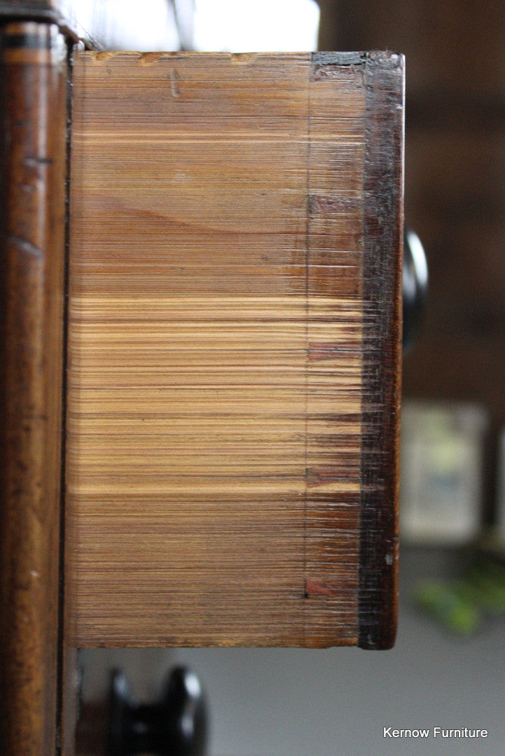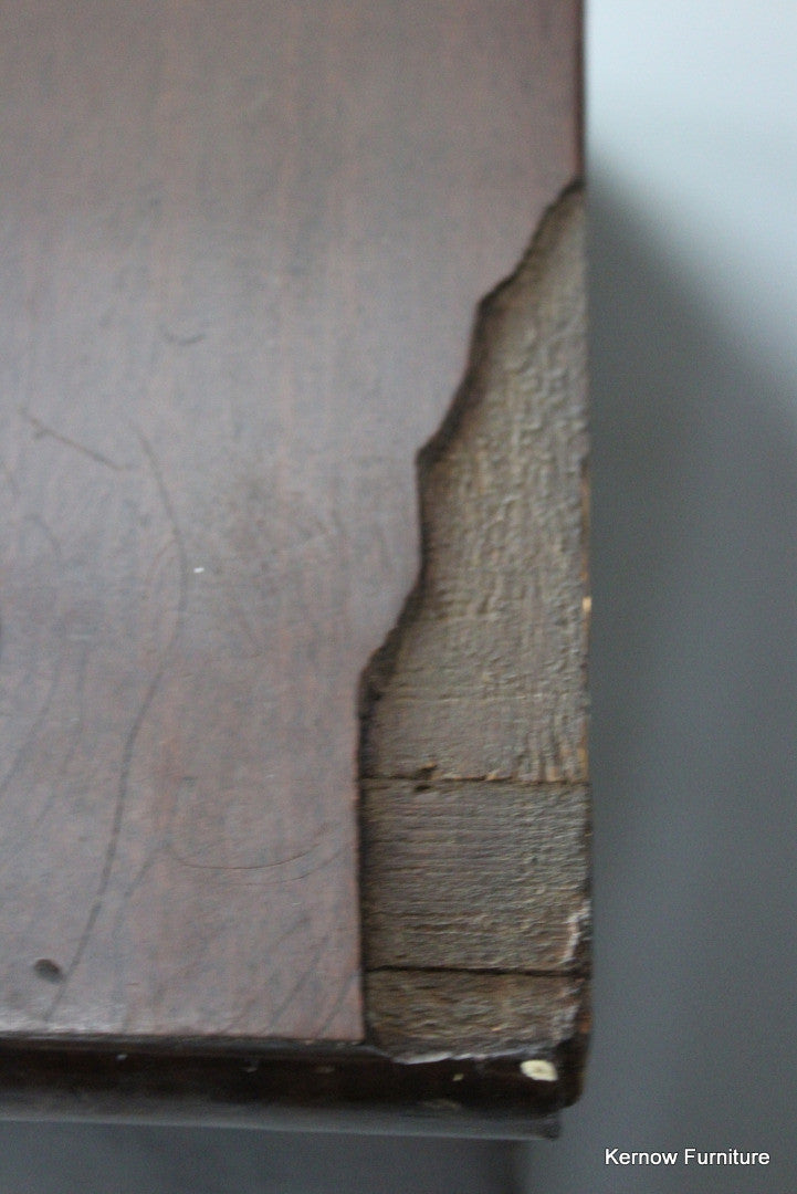 Condition: Overall good condition, soem general age and signs of use, very small amount of woodworm to the back panel, missing veneer to the back corner of the top.
