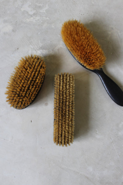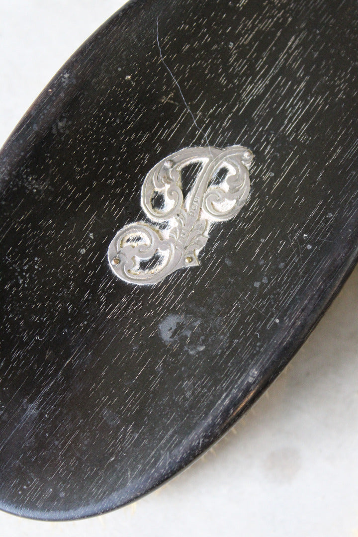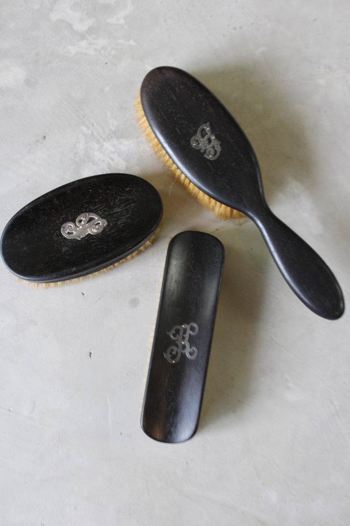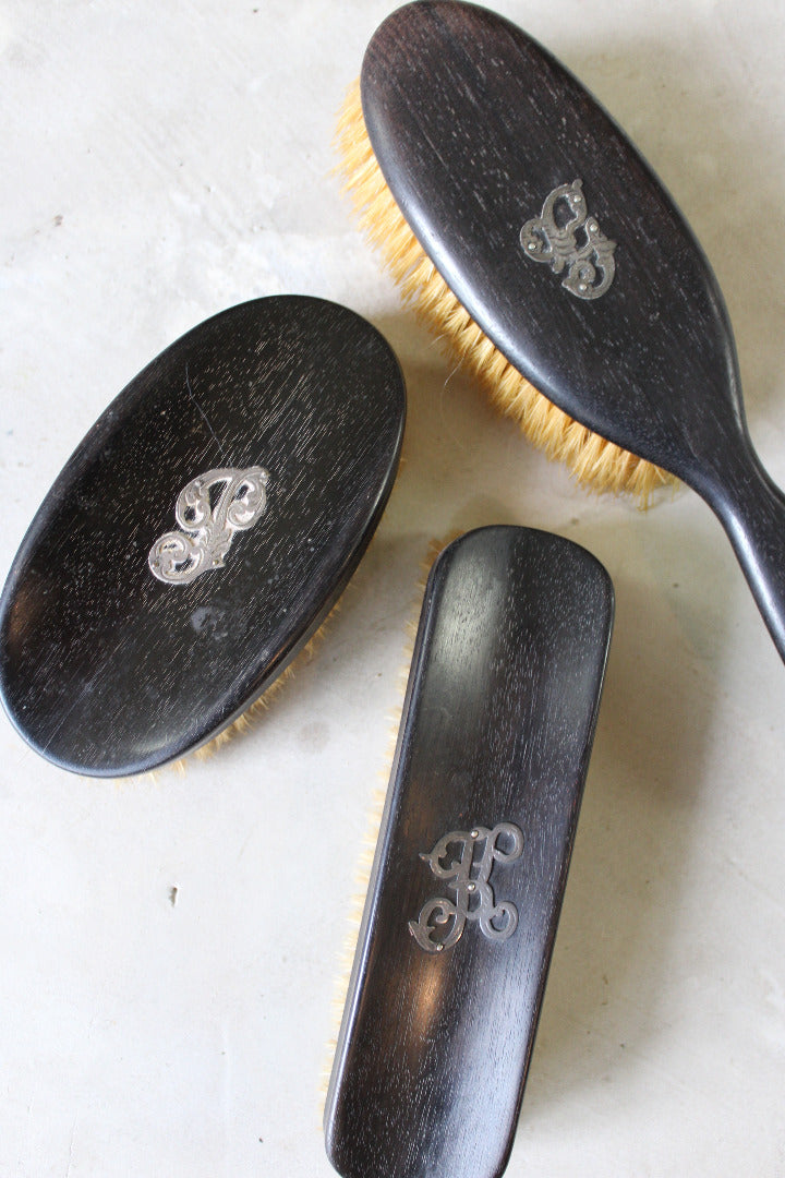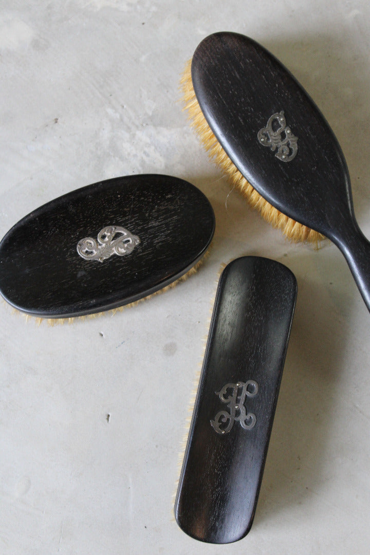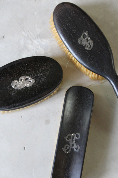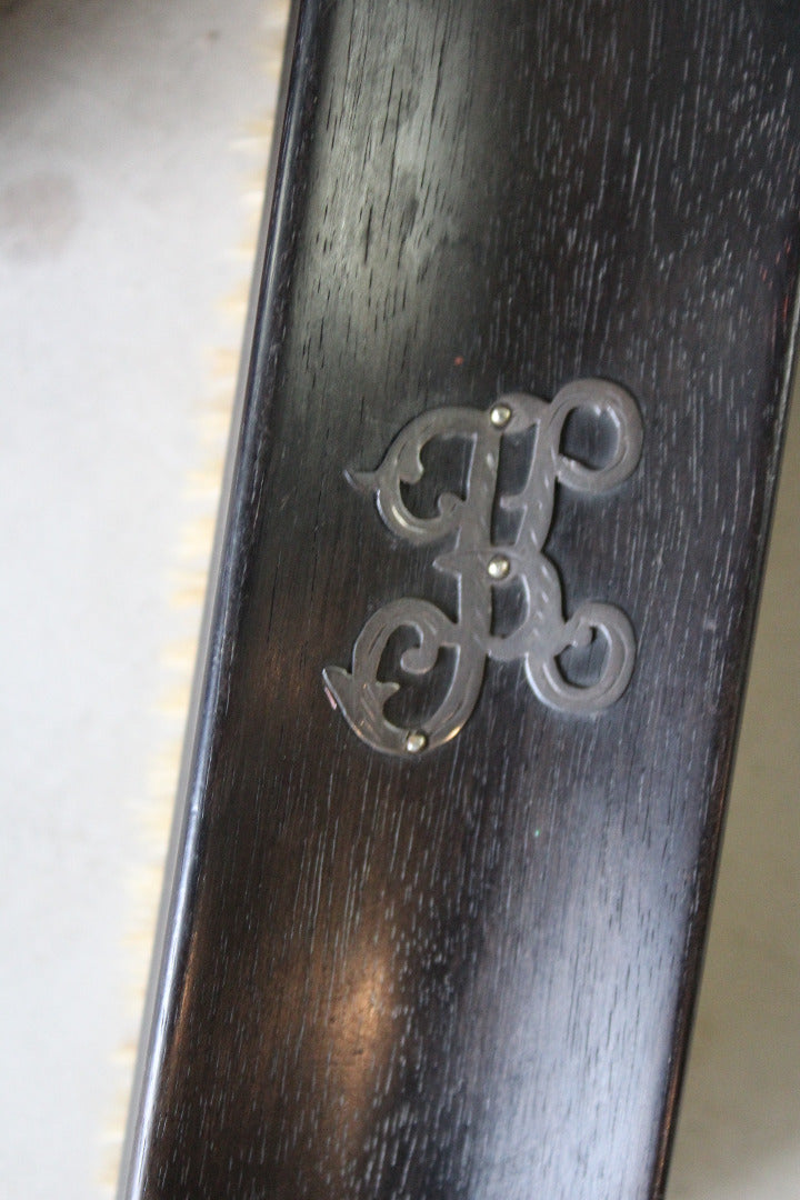 3 Victorian brushes. 3 Victorian ebonised brushes with ornate silver letter.
