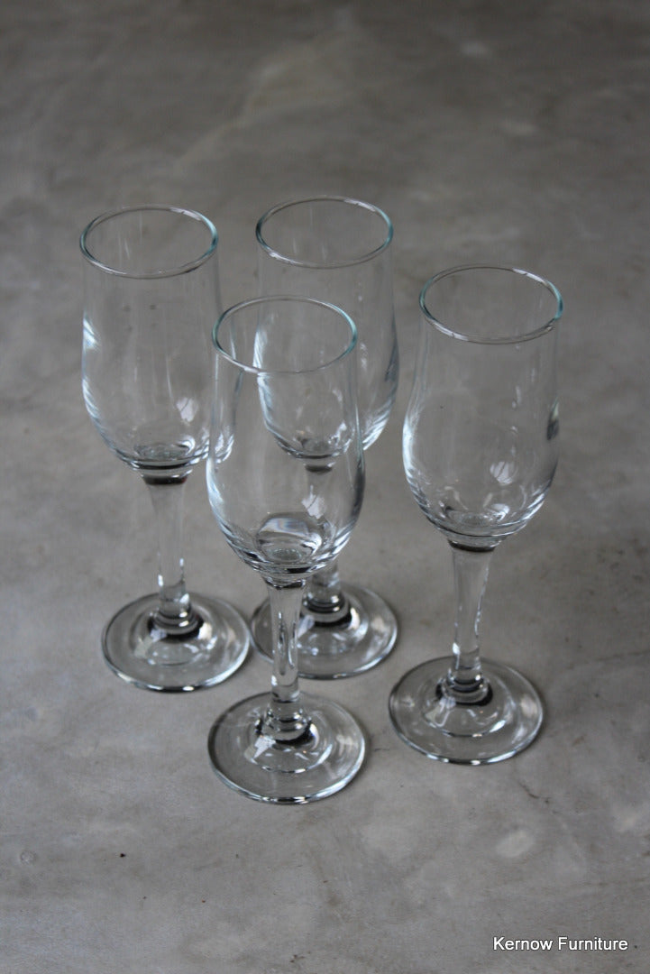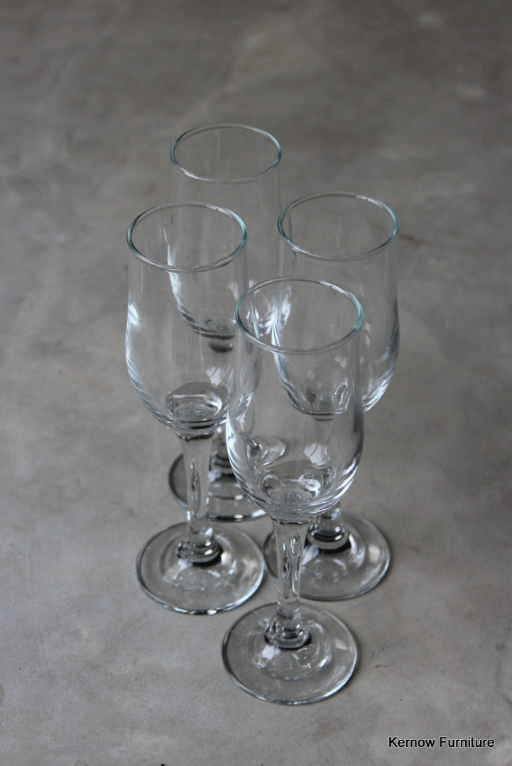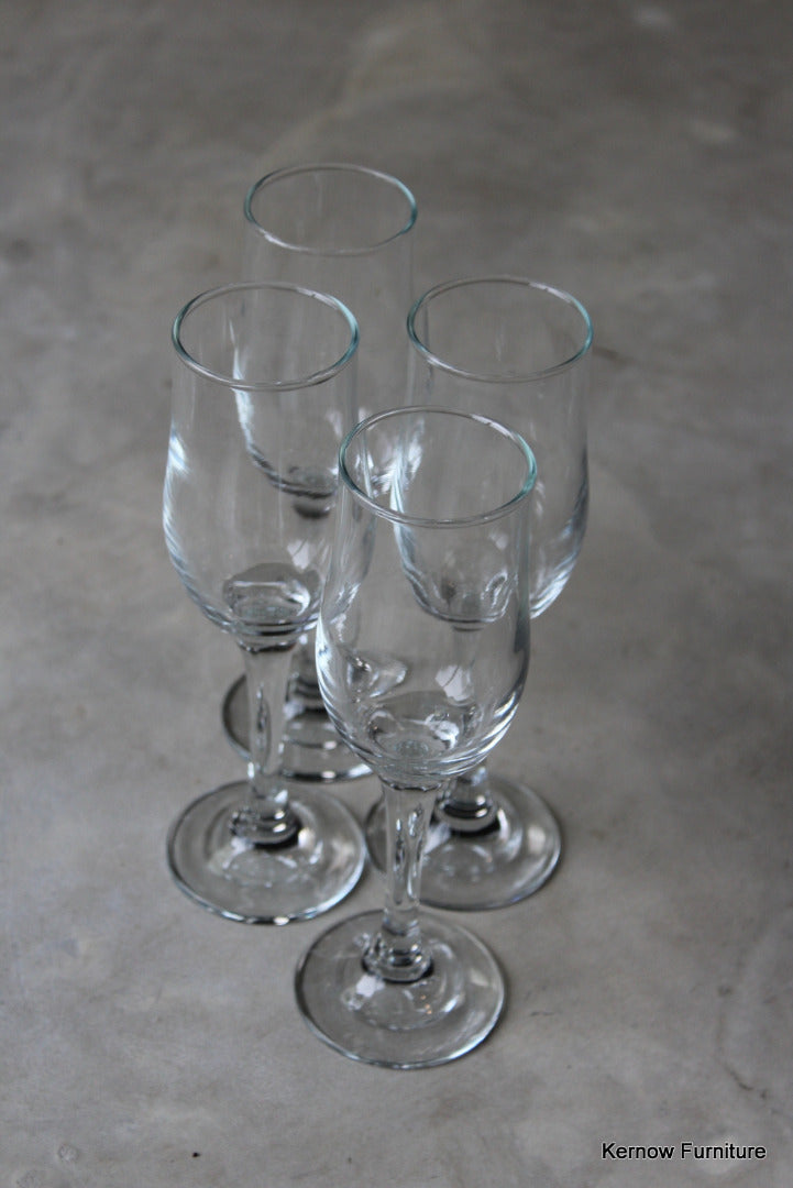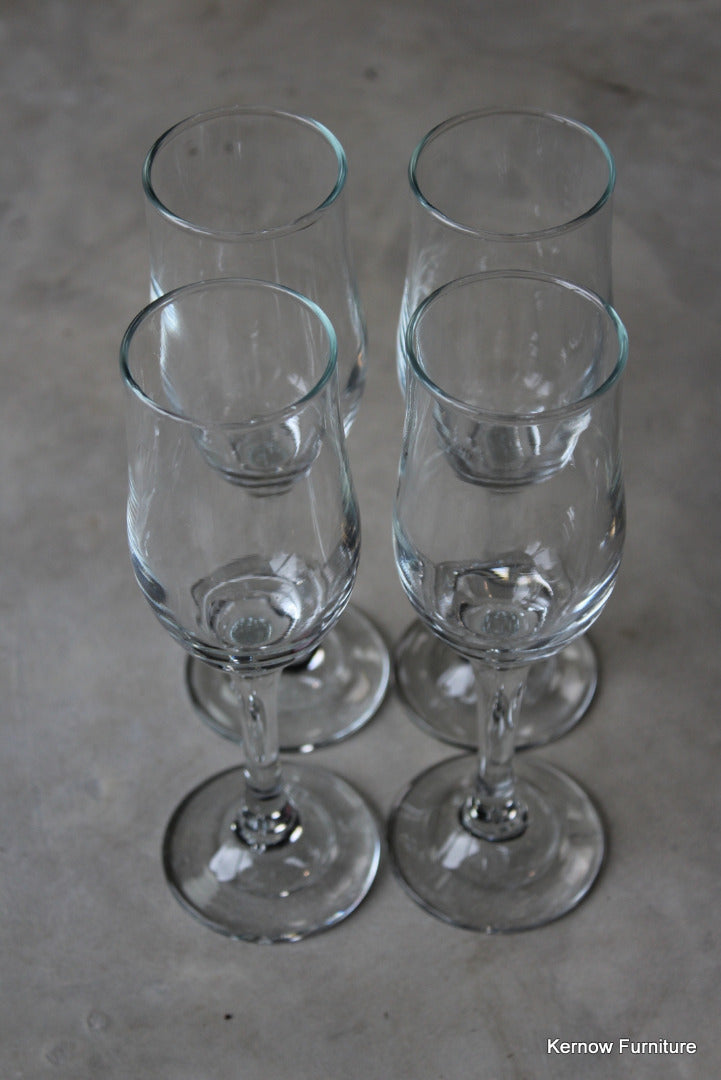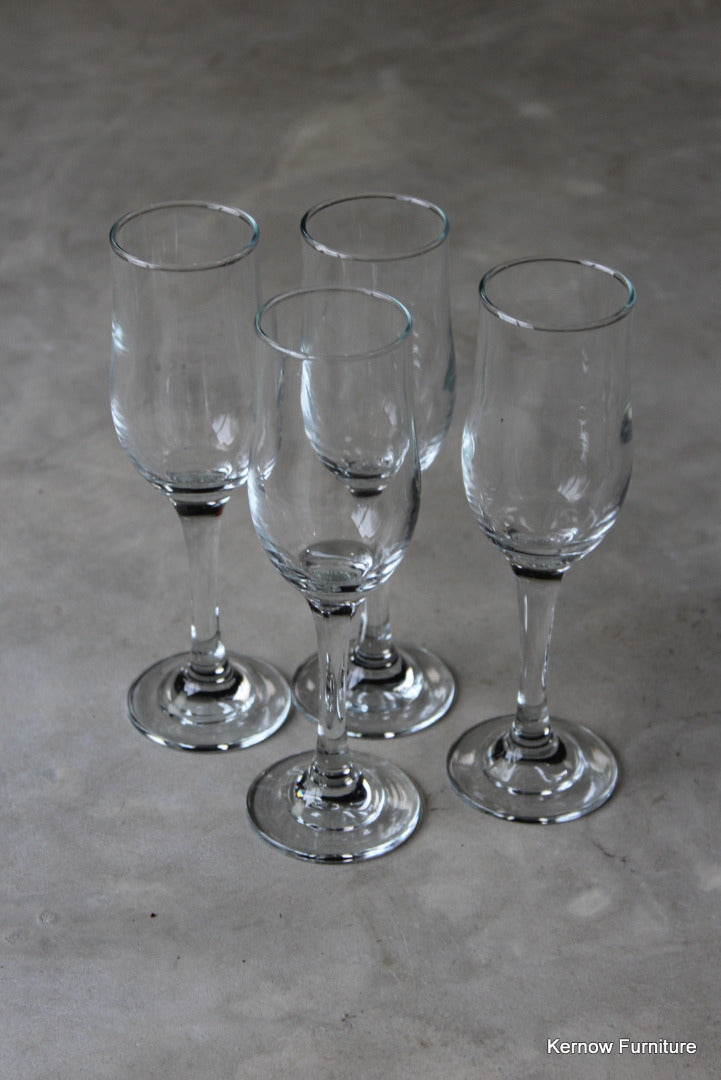 4 Champagne flutes. 4 quality glass stemmed flutes.