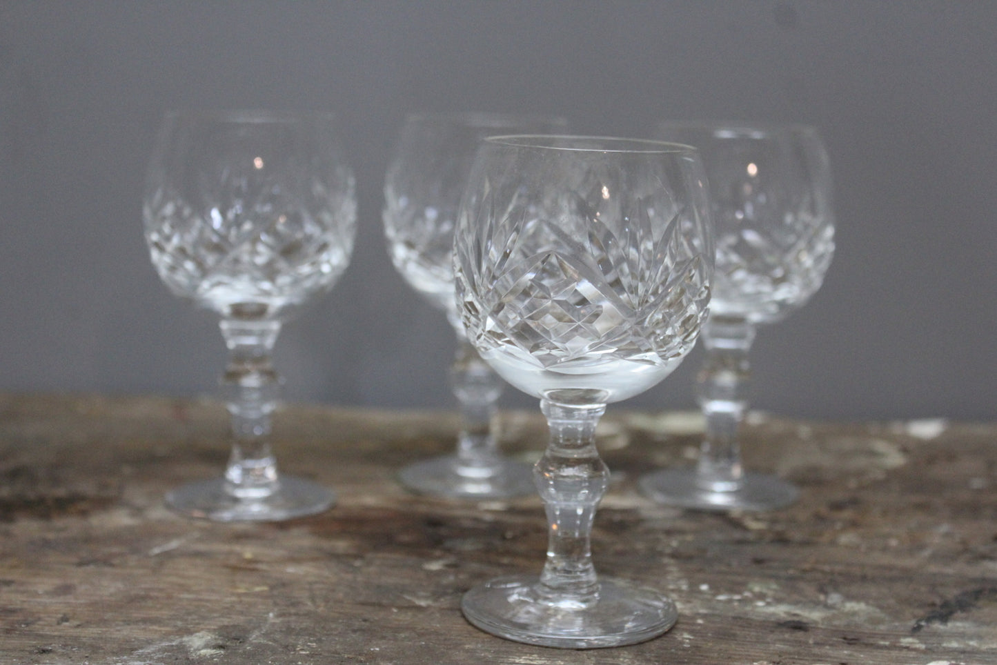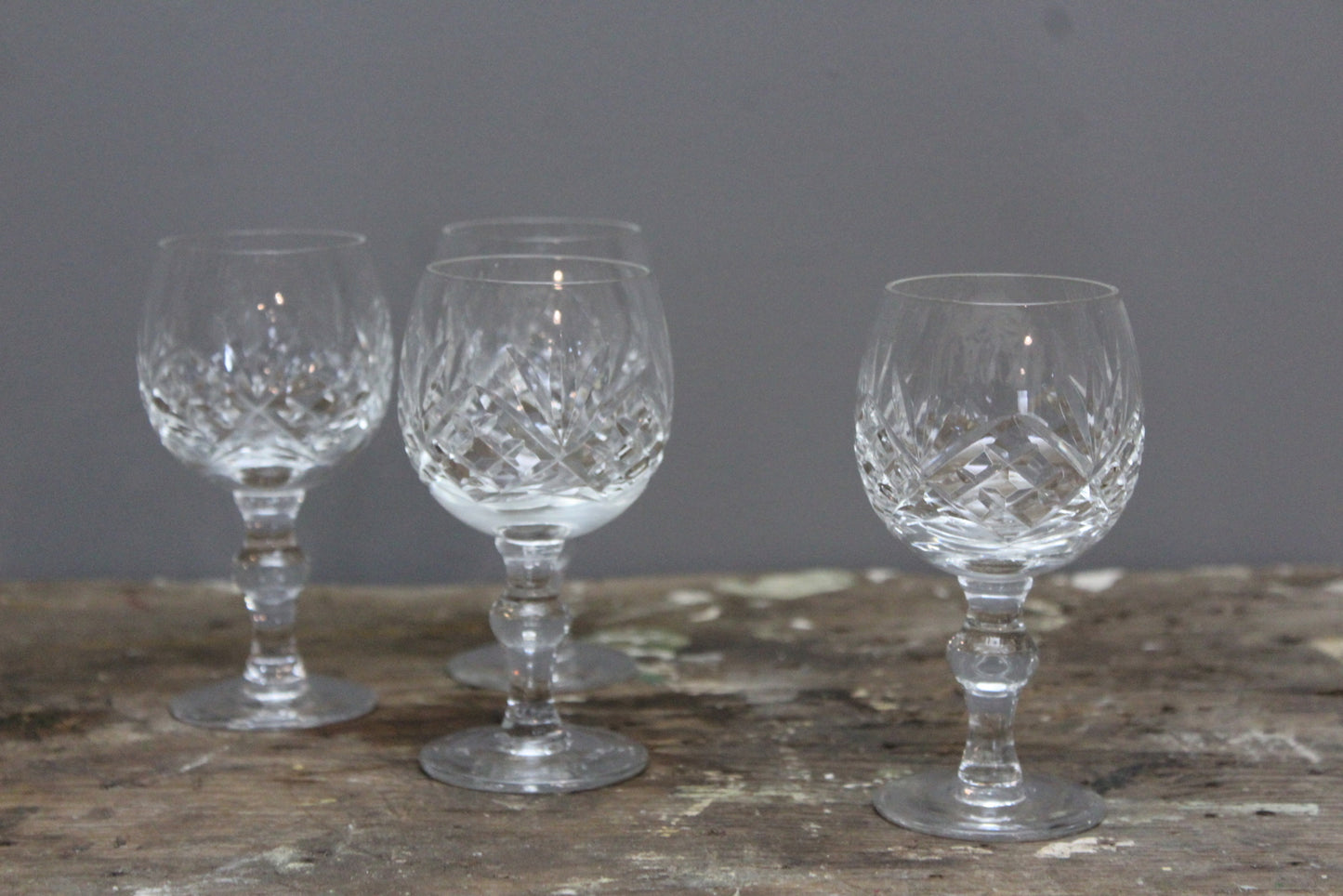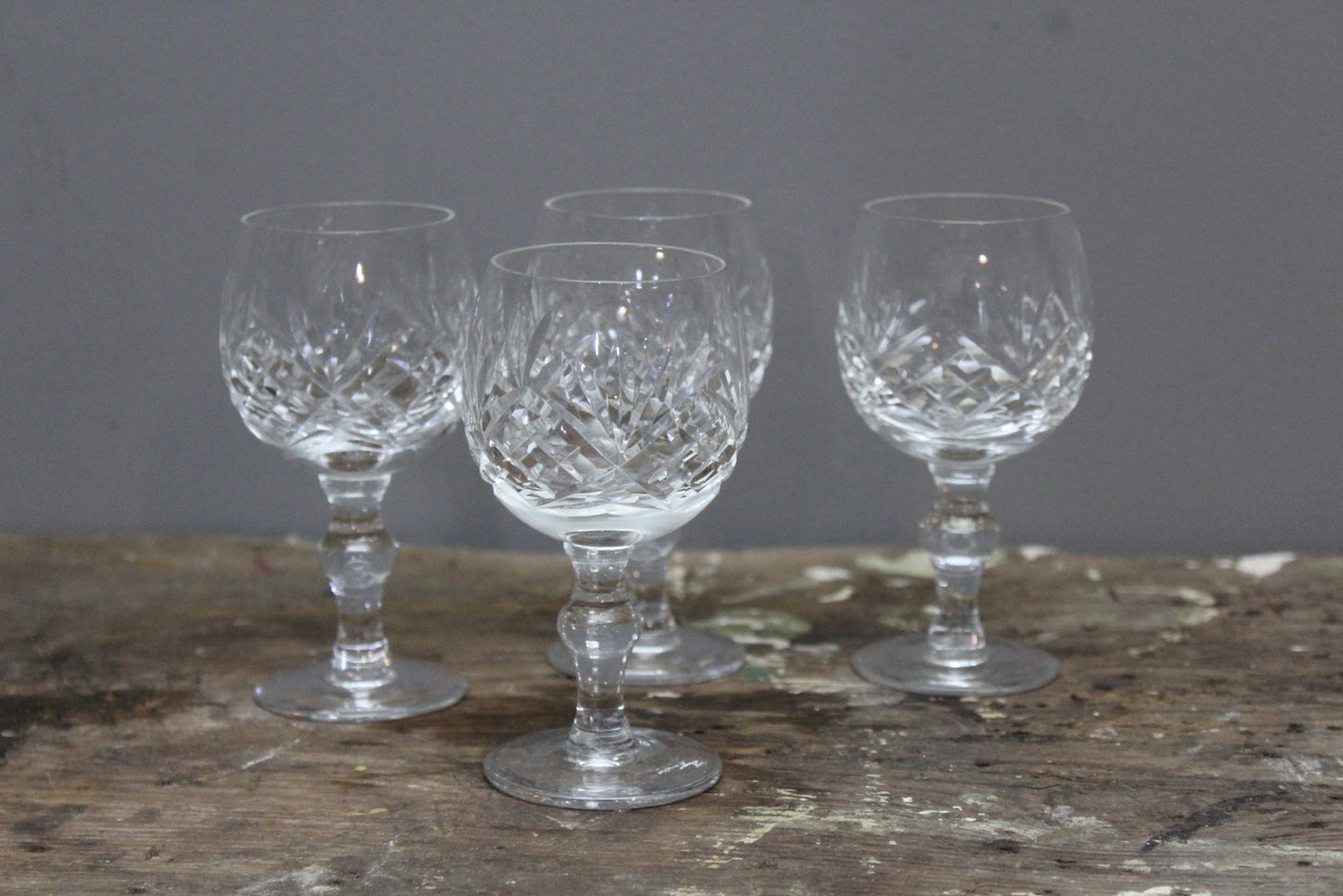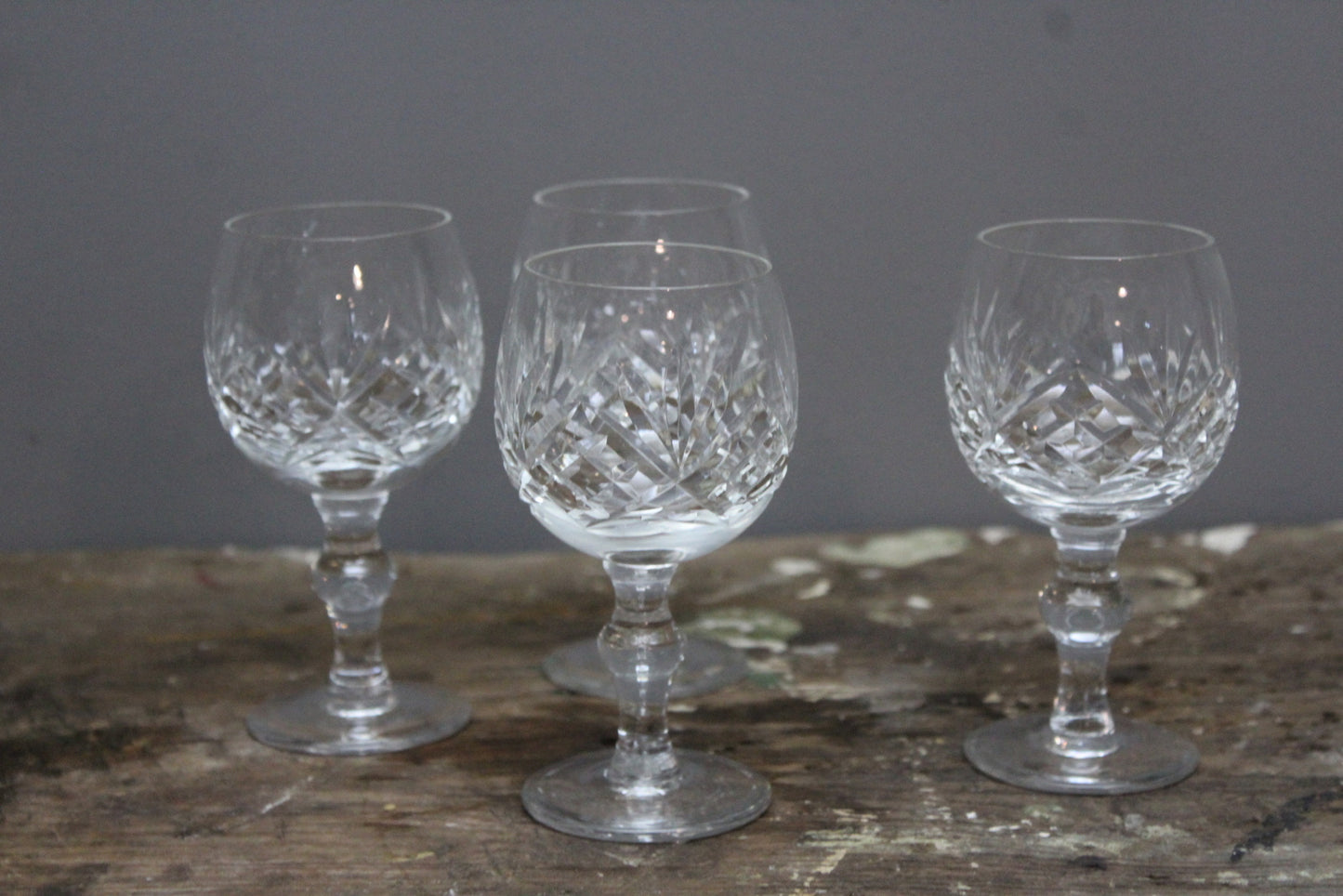 4 cut glass port glasses.
