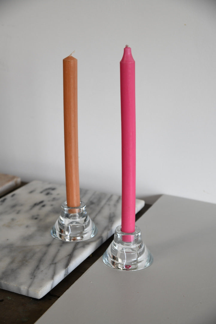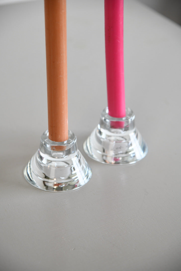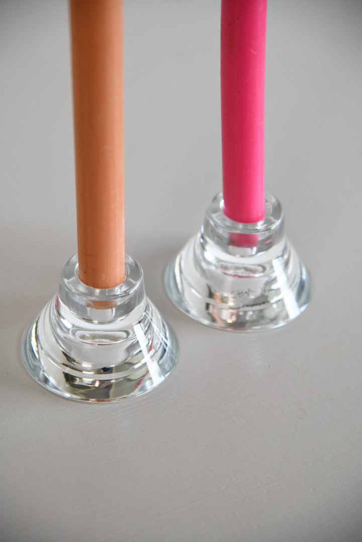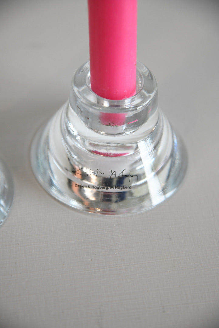 4 Vintage Glass Candlesticks. 2 Ikea K Hagberg clear glass candlesticks & 2 other similar clear glass short candlesticks.
