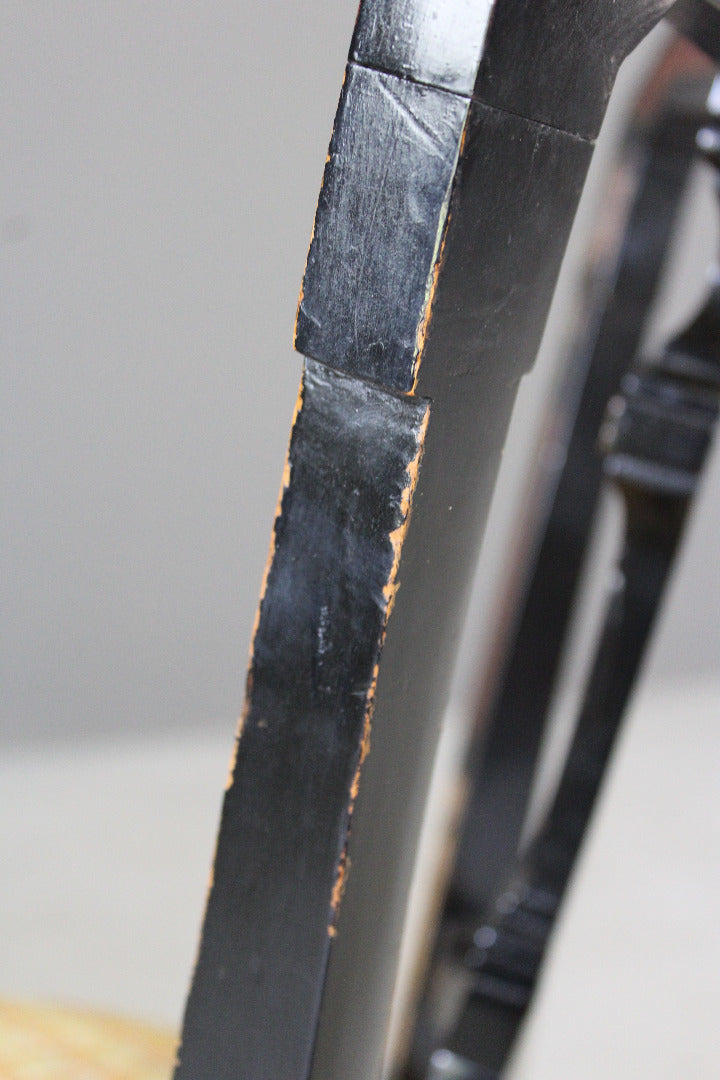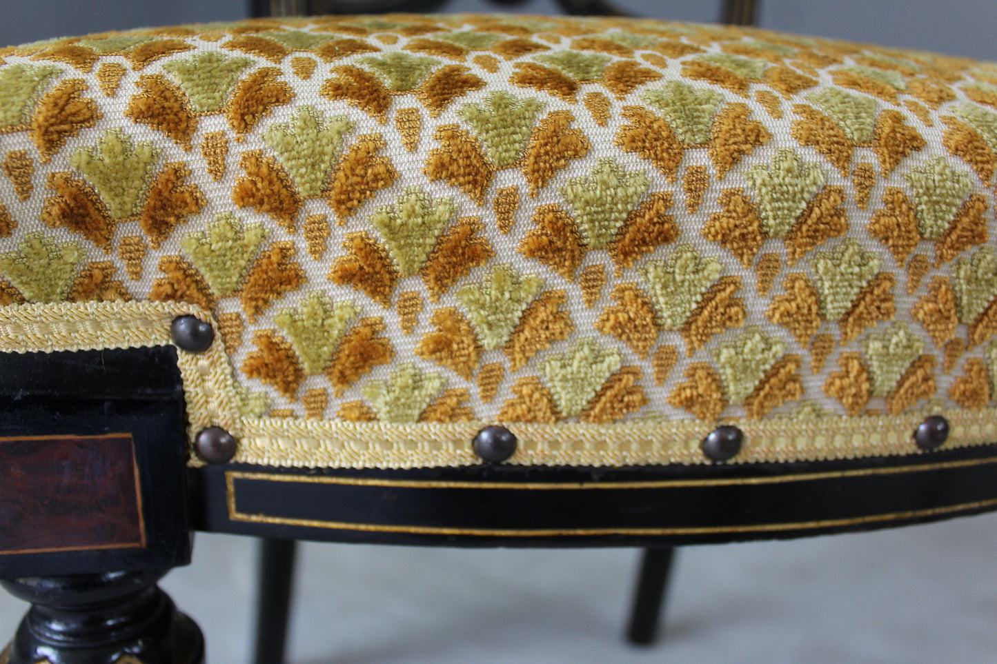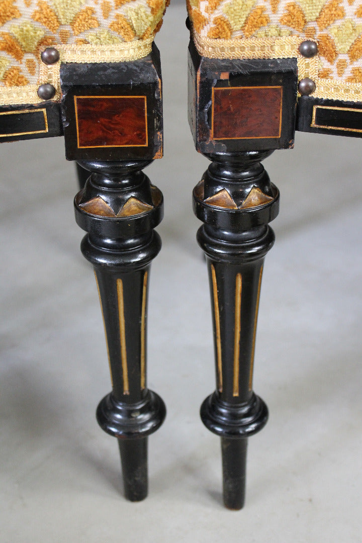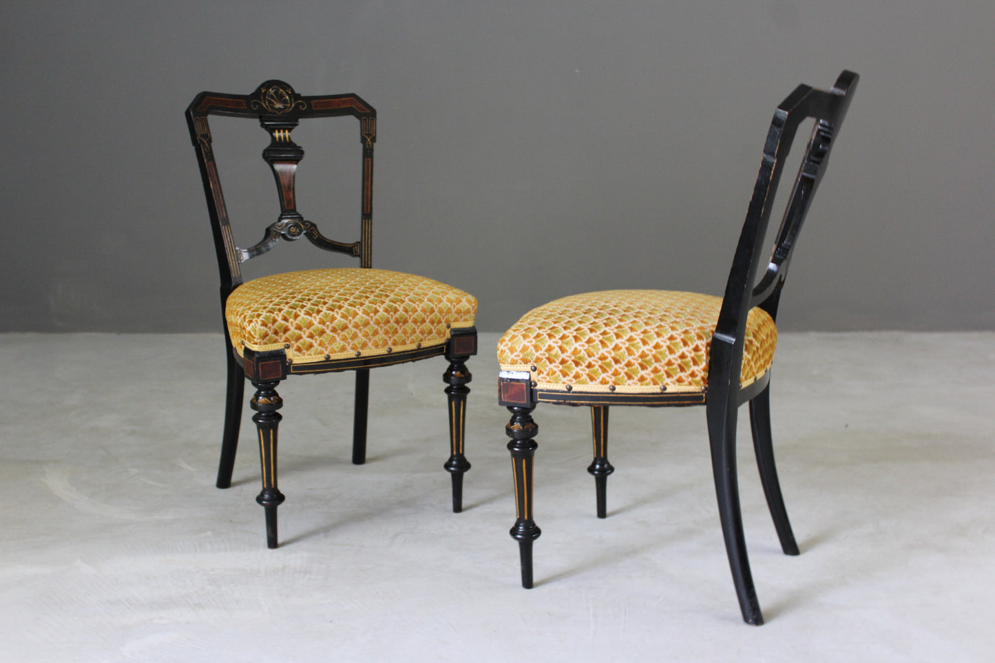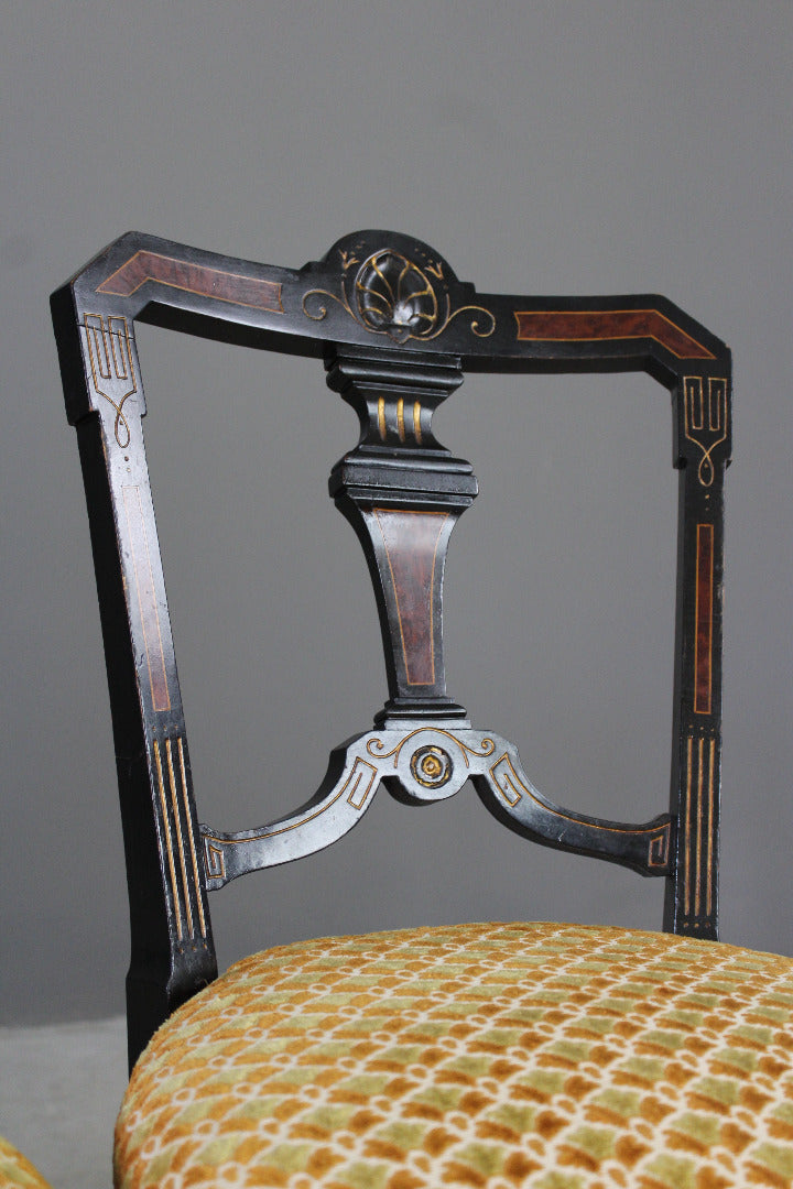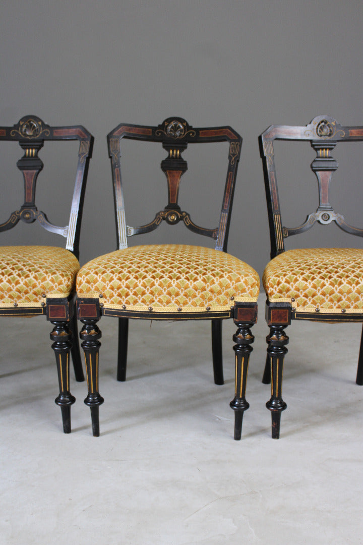 Aesthetic Movement Dining Chairs. Set 6 Aesthetic Movement Victorian dining chairs with ebonised frames and gilt frames, sprung upholstered seats in cut chenille fabric.