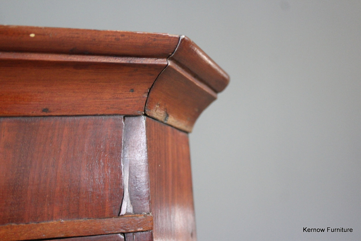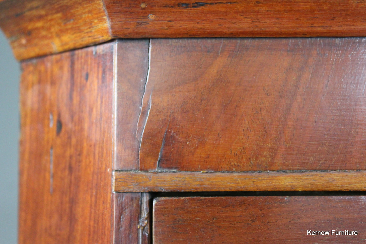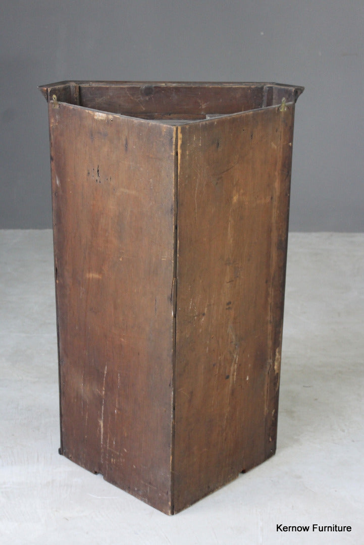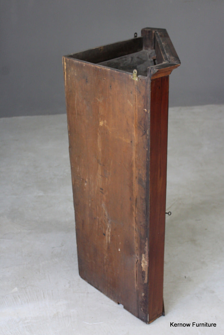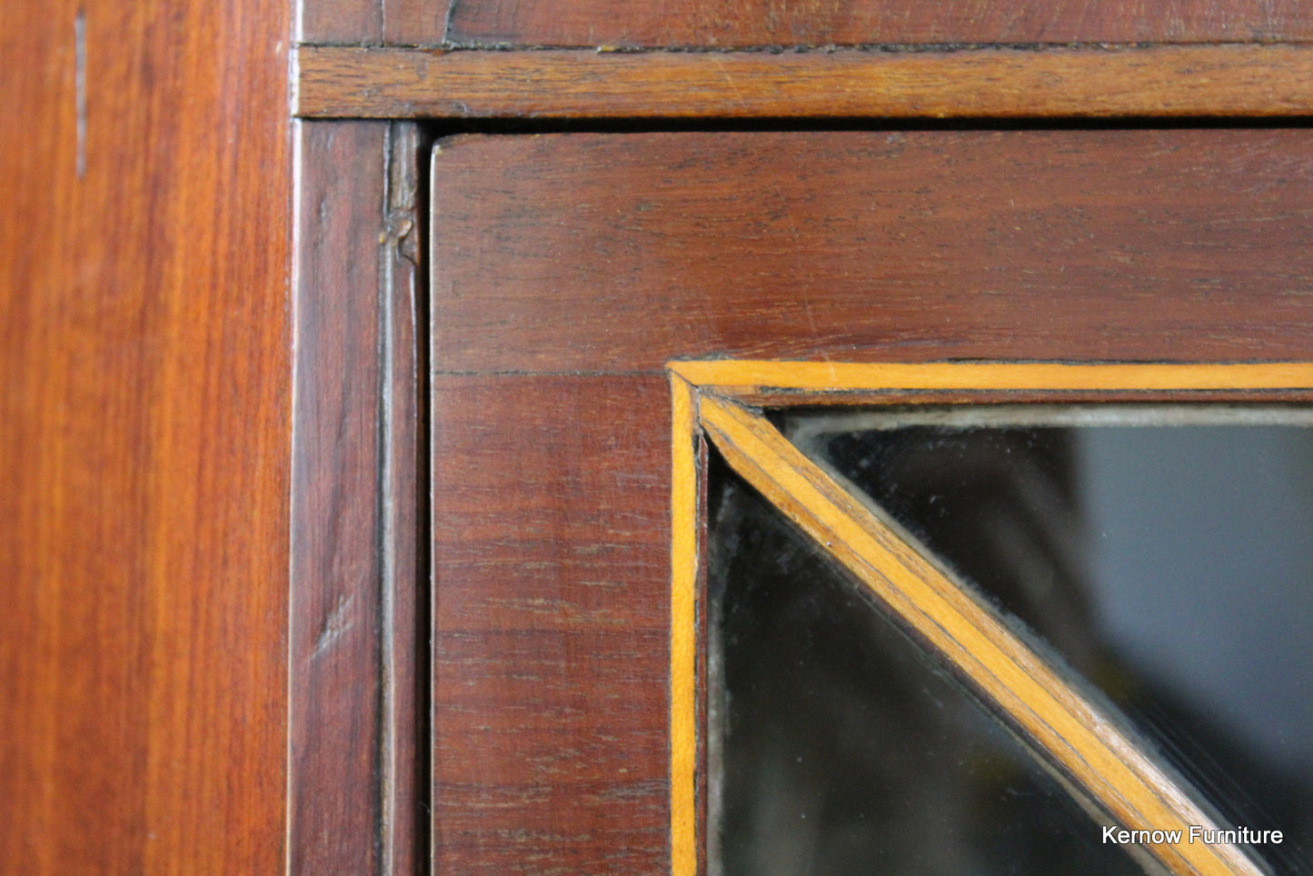 Antique astragal glazed corner cabinet. 19th Century inlaid mahogany hanging corner cabinet with lined interior & astragal glazed door.