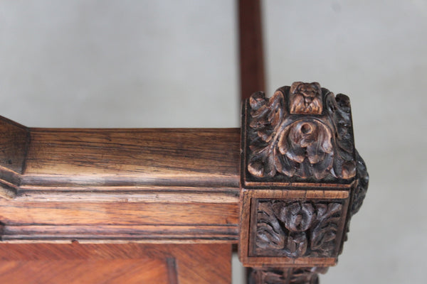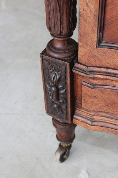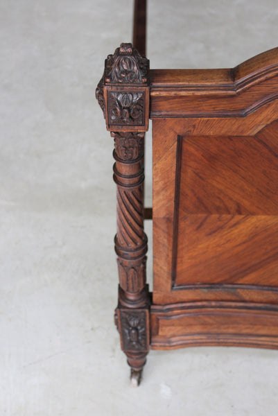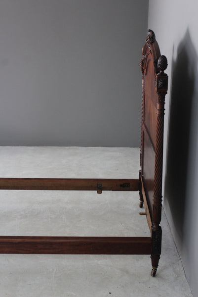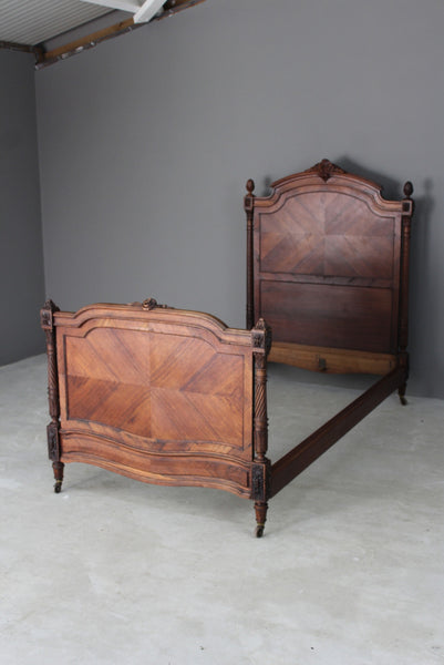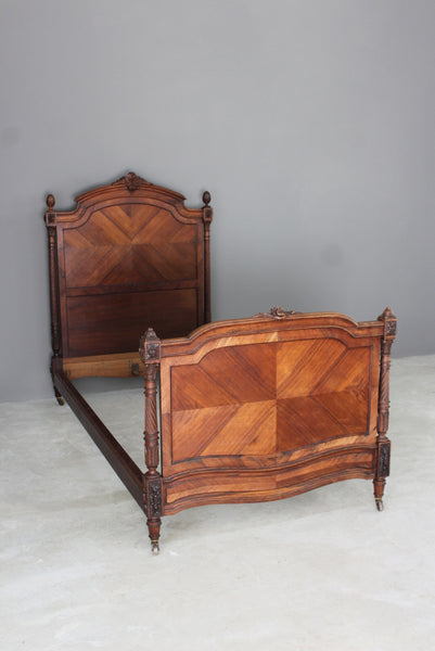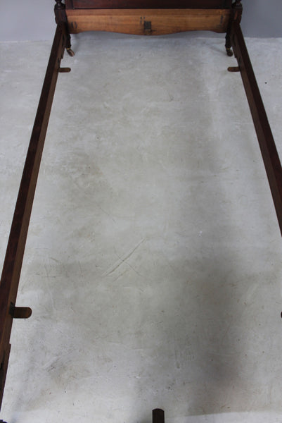 Antique French single bed. Antique walnut single bed frame, carved spiral pillars with rosewood veneered headboard and footboard.