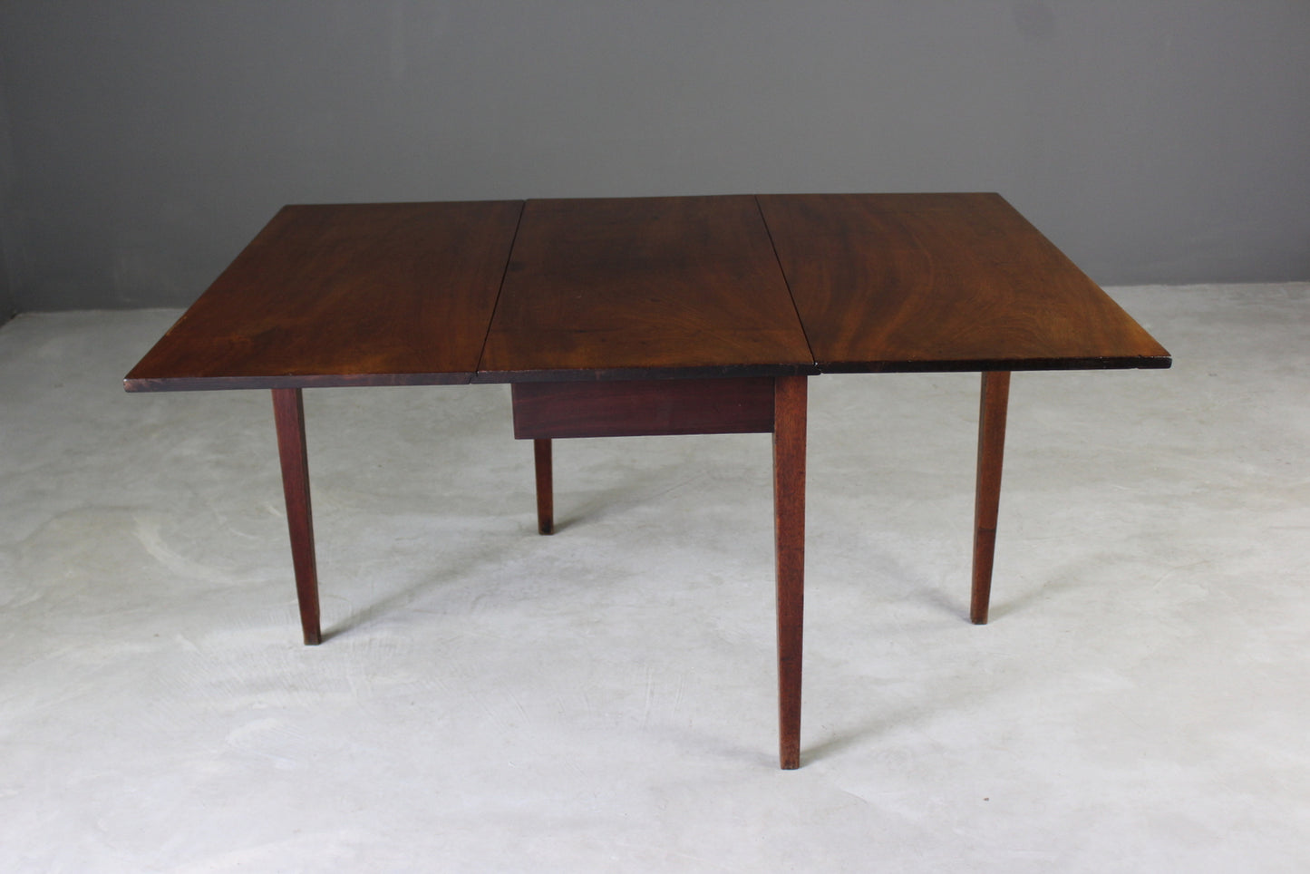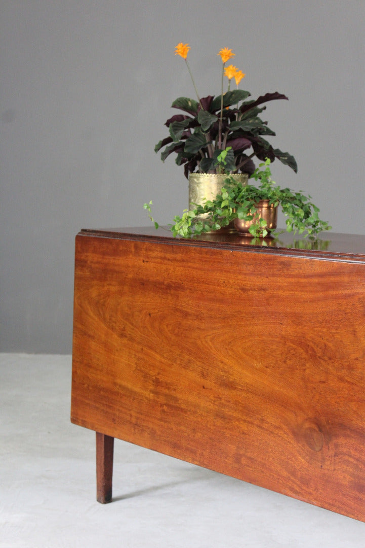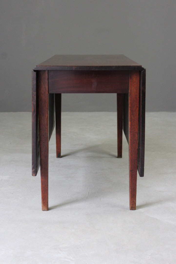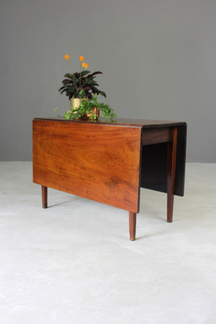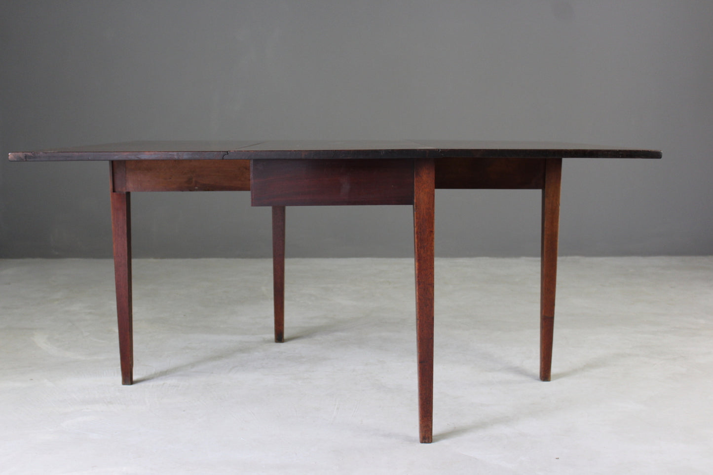 Antique mahogany drop leaf table. Early 19th Century solid mahogany rectangular dining table with pair of drop leaves on square tapering legs.