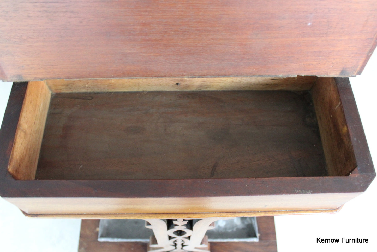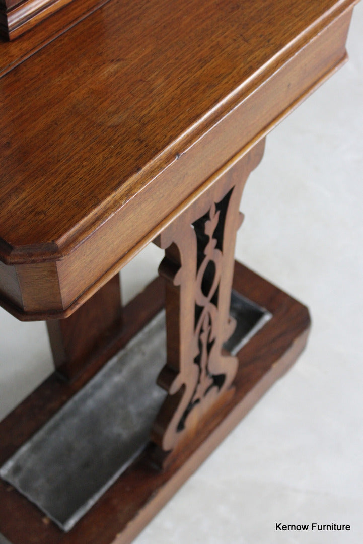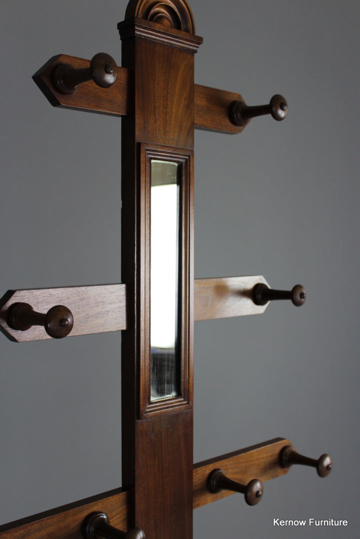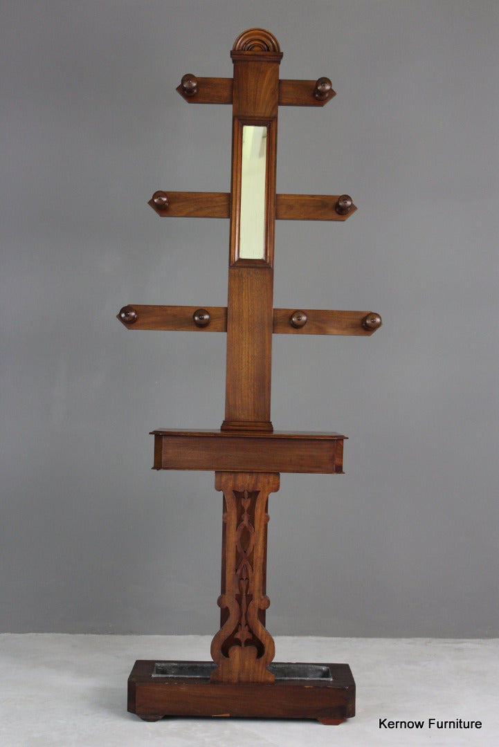 Antique mahogany hall stand. Victorian freestanding mahogany veneer coat stand with hinged lid glove box, small cental mirror and 8 turned coat hooks.
