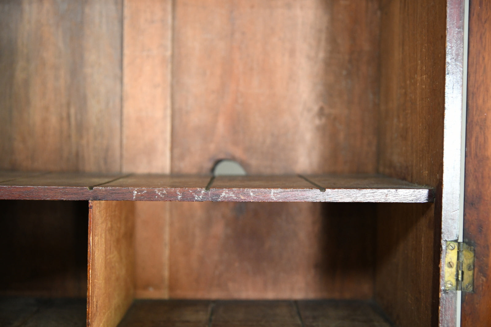 Condition: Overall good condition, presents well, some general age and wear to the finish, later small door pull added to the bottom cupboard, one shelf of pigeon hole dividers have been removed.