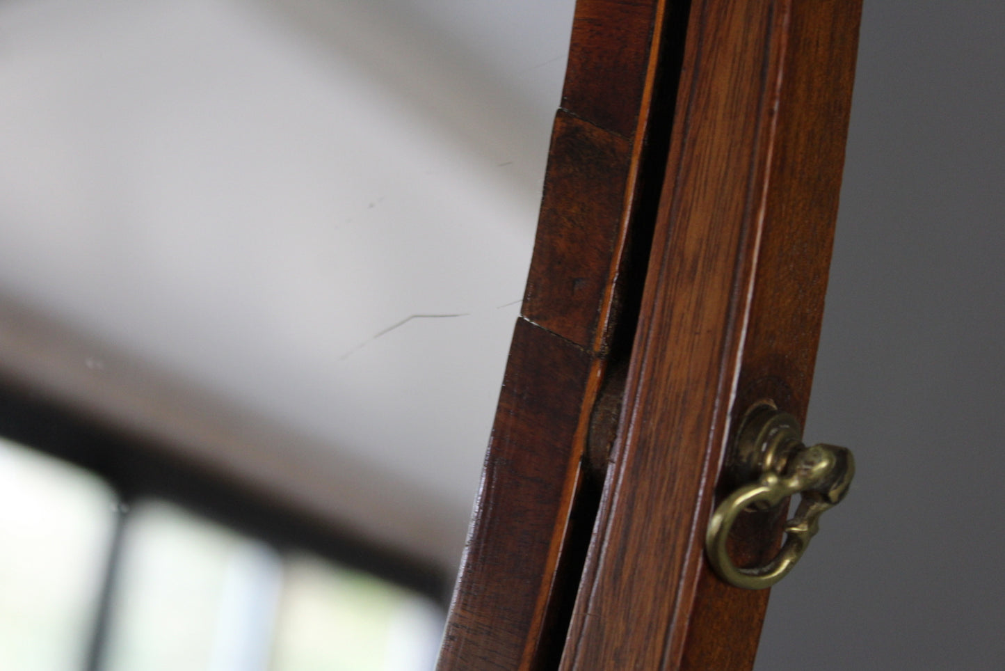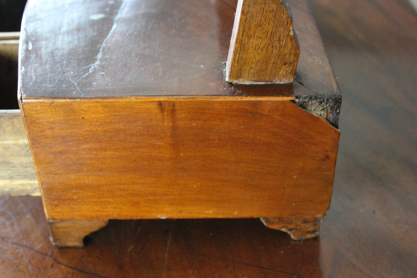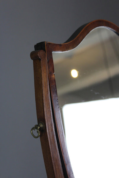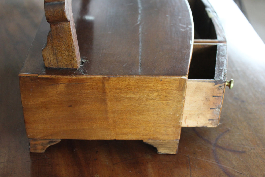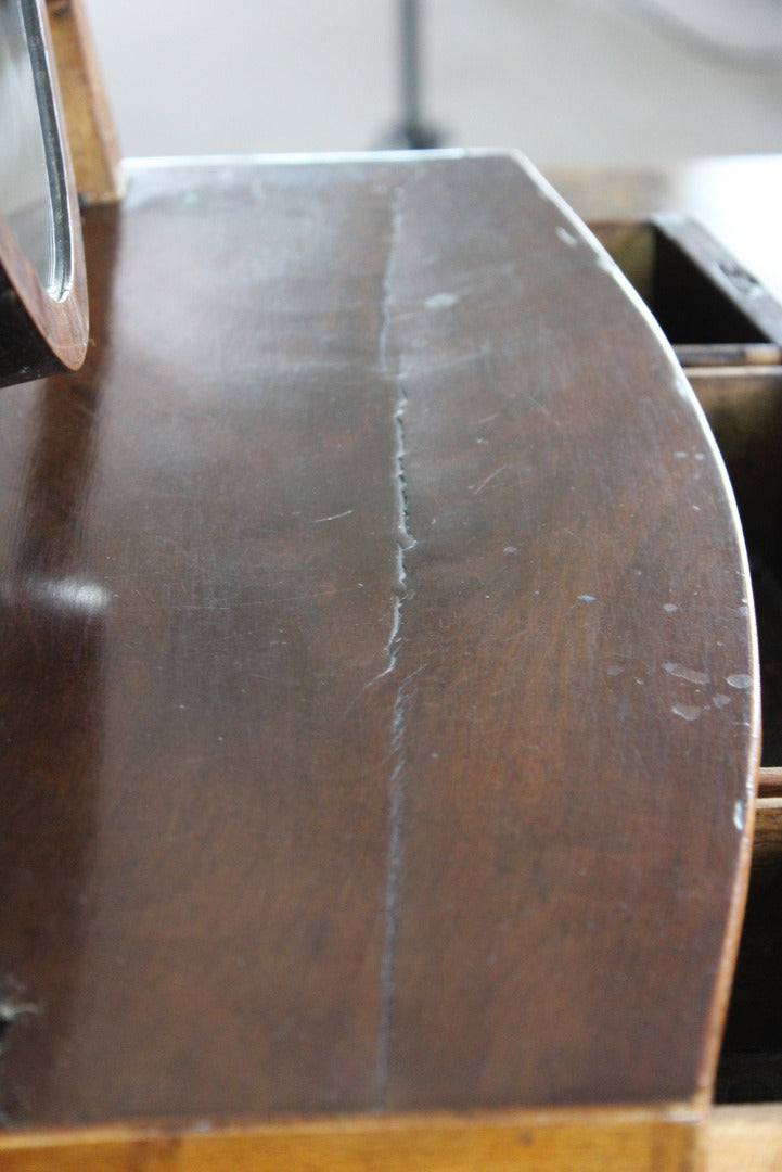 Antique Mahogany shield swing toilet mirror. Bow front base with three small drawers, shield shape swing mirror.