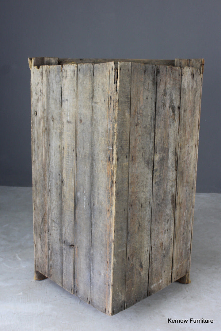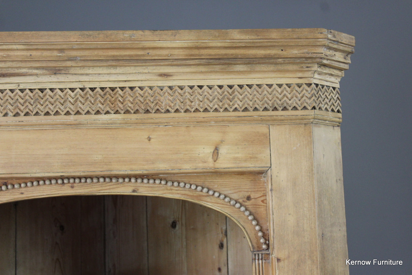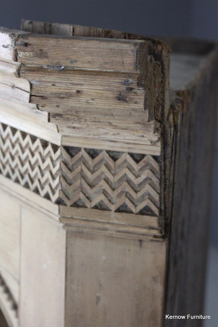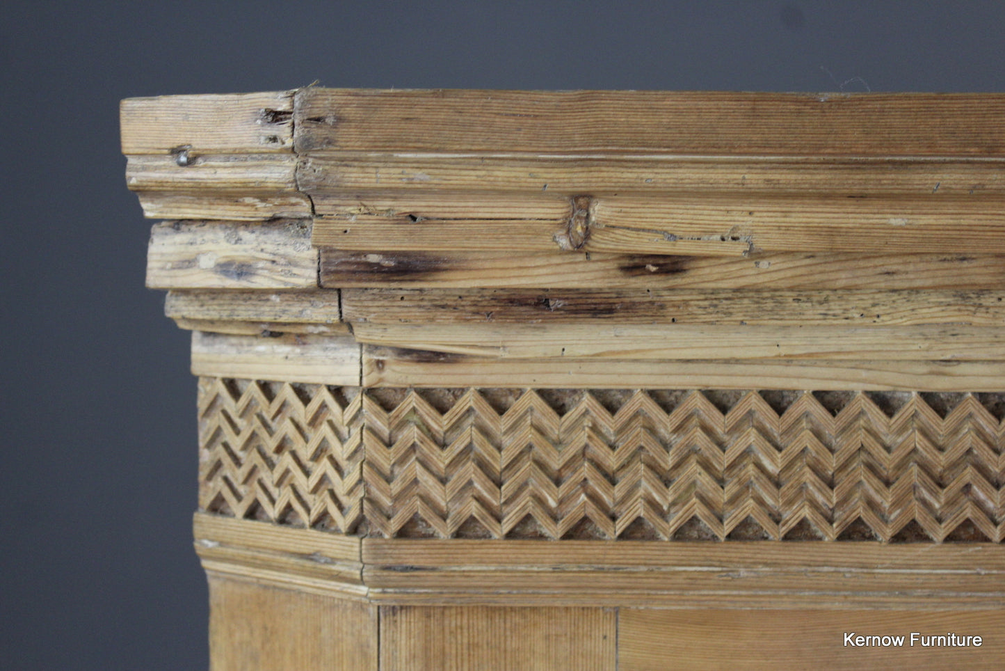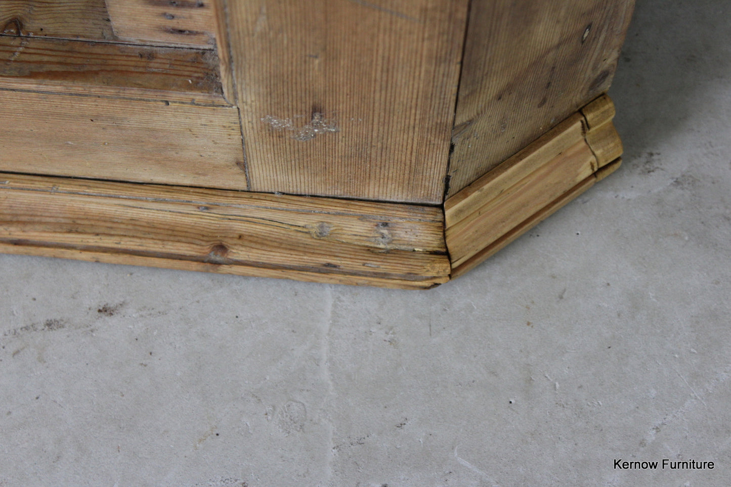 Antique pine hanging corner cupboard. Large 19th Century rustic pine wall cupboard, three fixed shaped shelves.