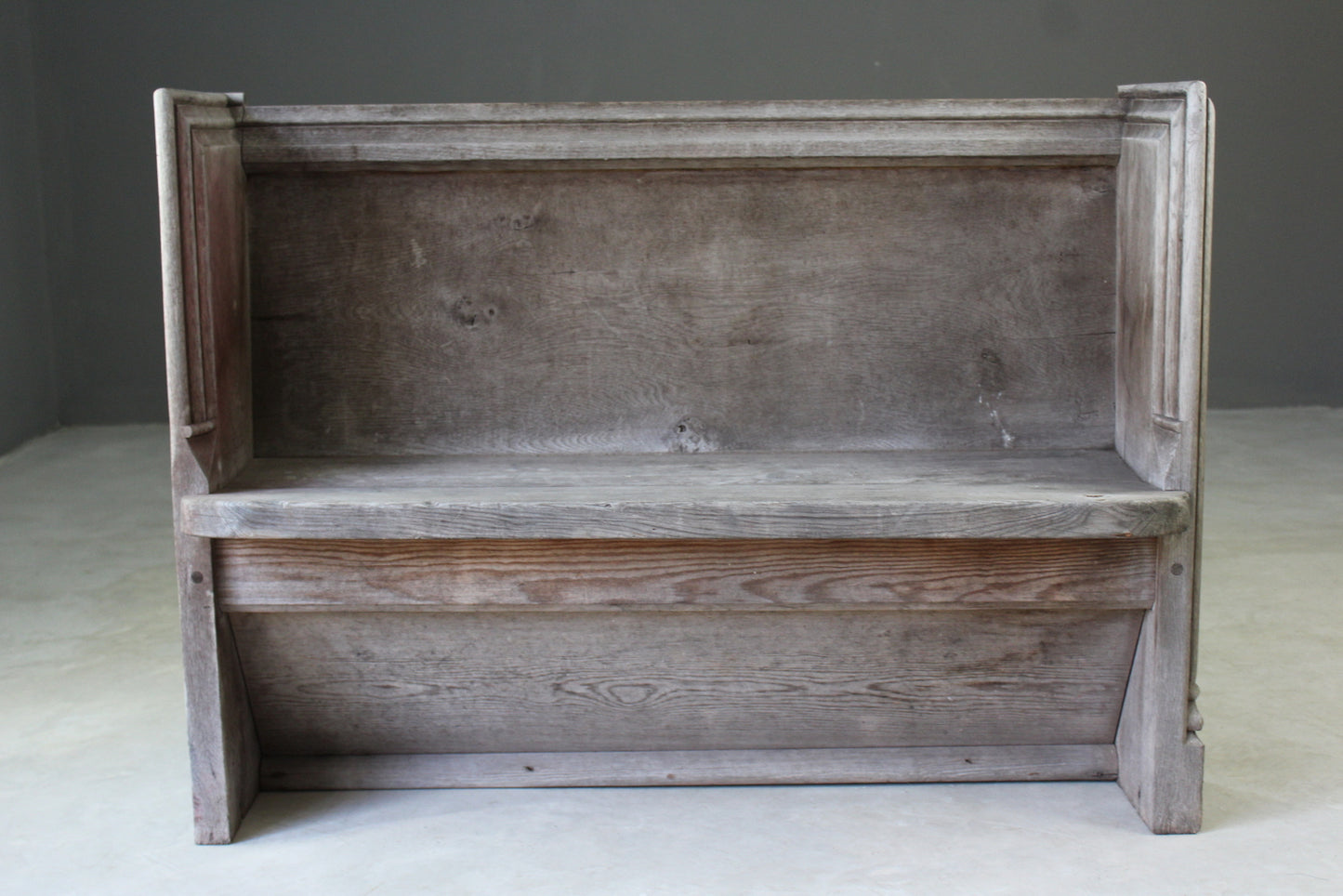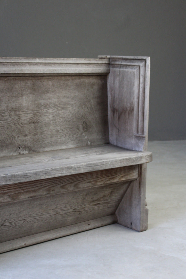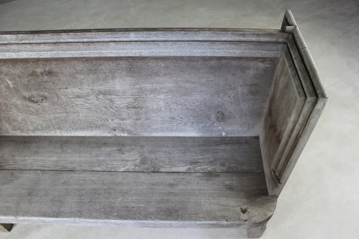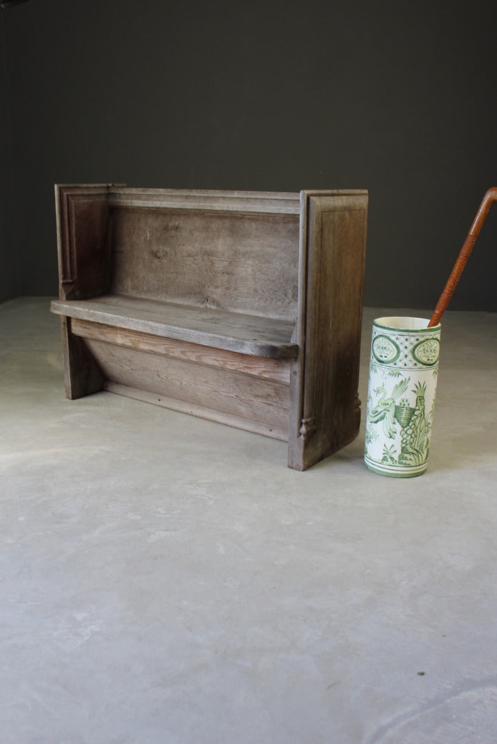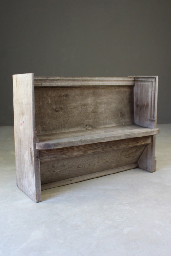 Antique pine and oak pew. Antique small church pew, constructed of oak and pine with heavily weathered finish, nicely faded and distressed look. Freestanding, perfect for a kitchen or hall bench.