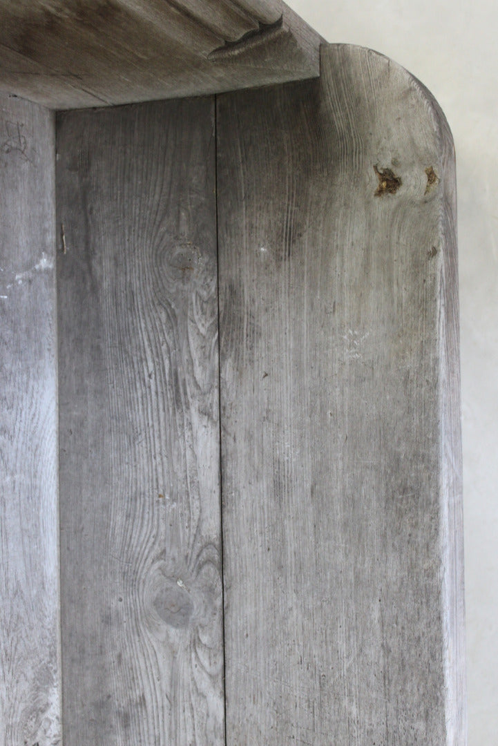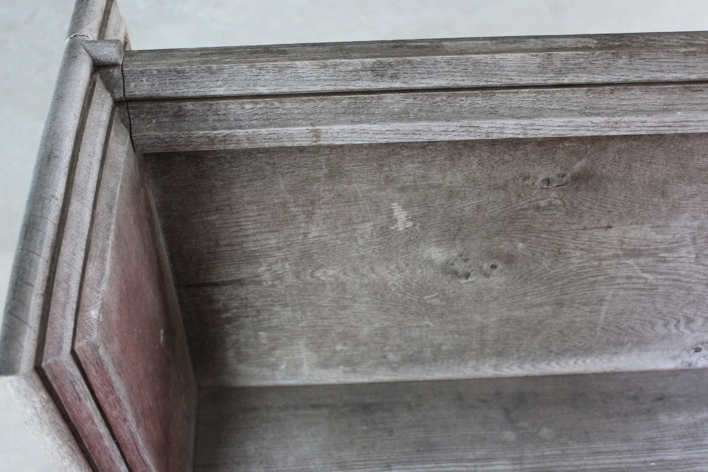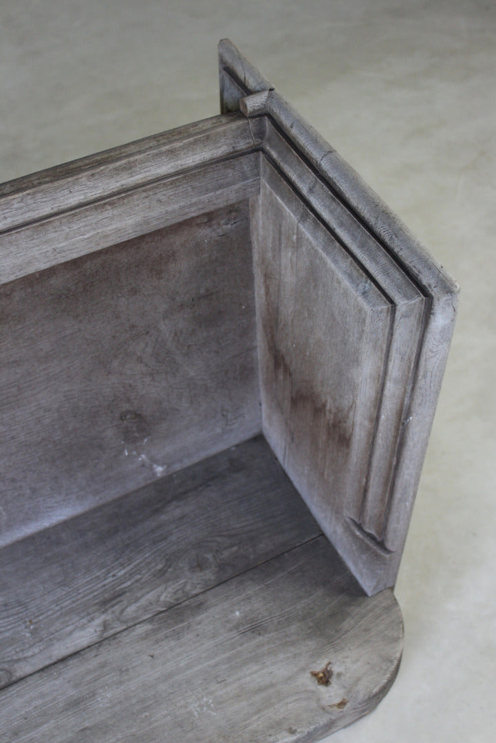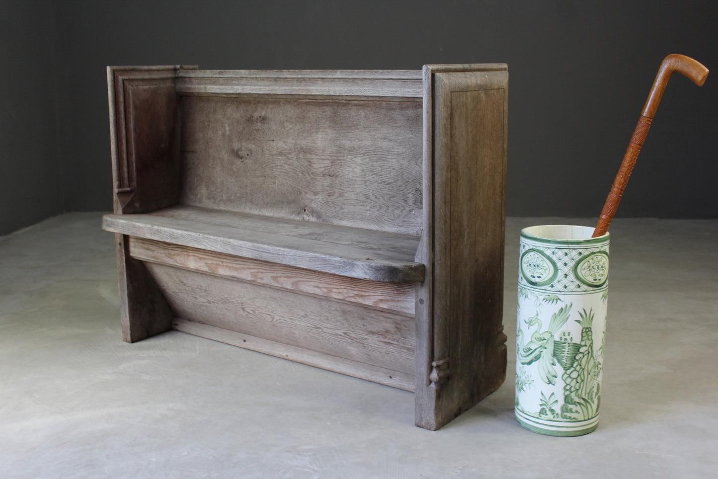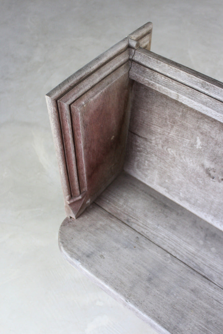 Antique pine and oak pew. Antique small church pew, constructed of oak and pine with heavily weathered finish, nicely faded and distressed look. Freestanding, perfect for a kitchen or hall bench.