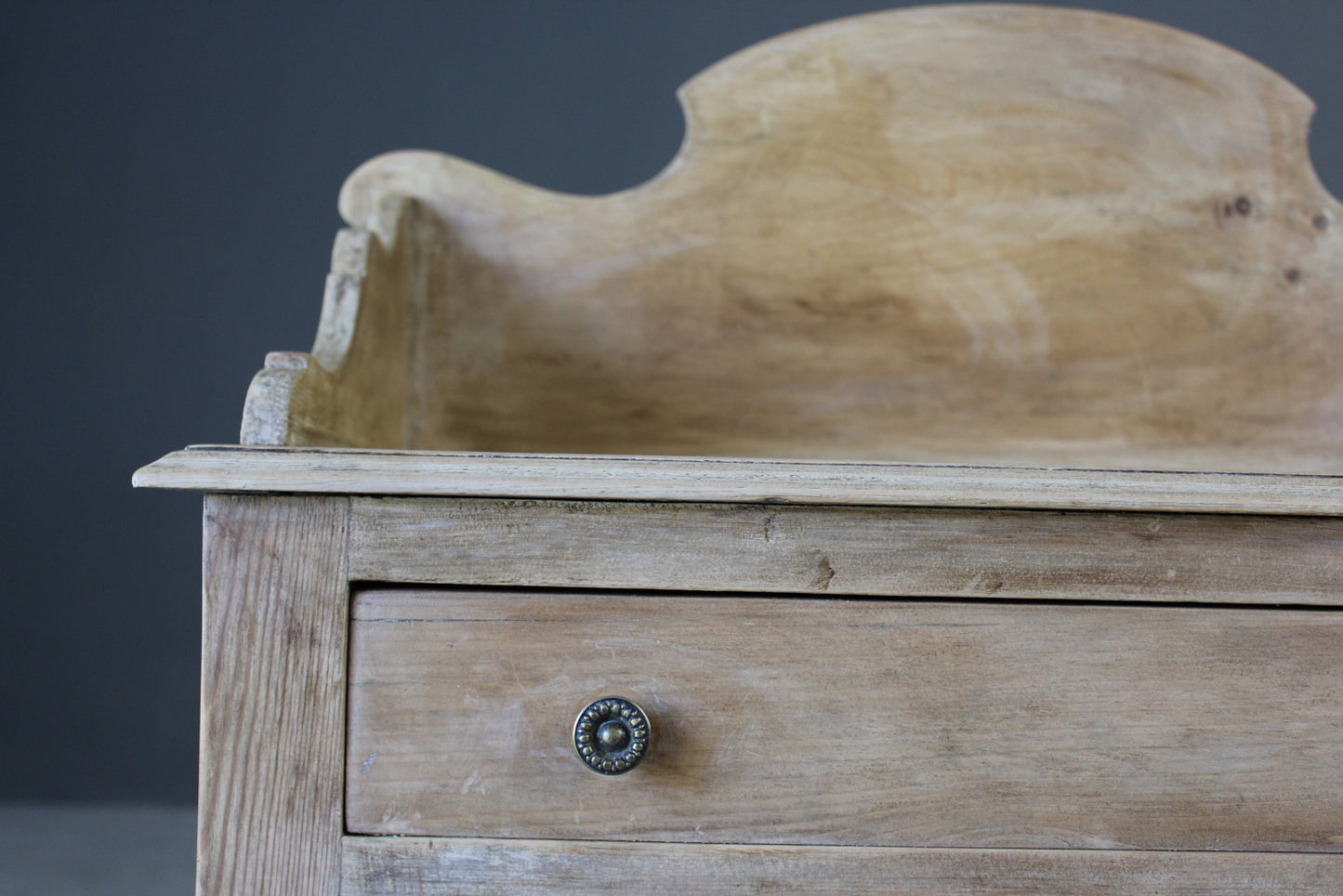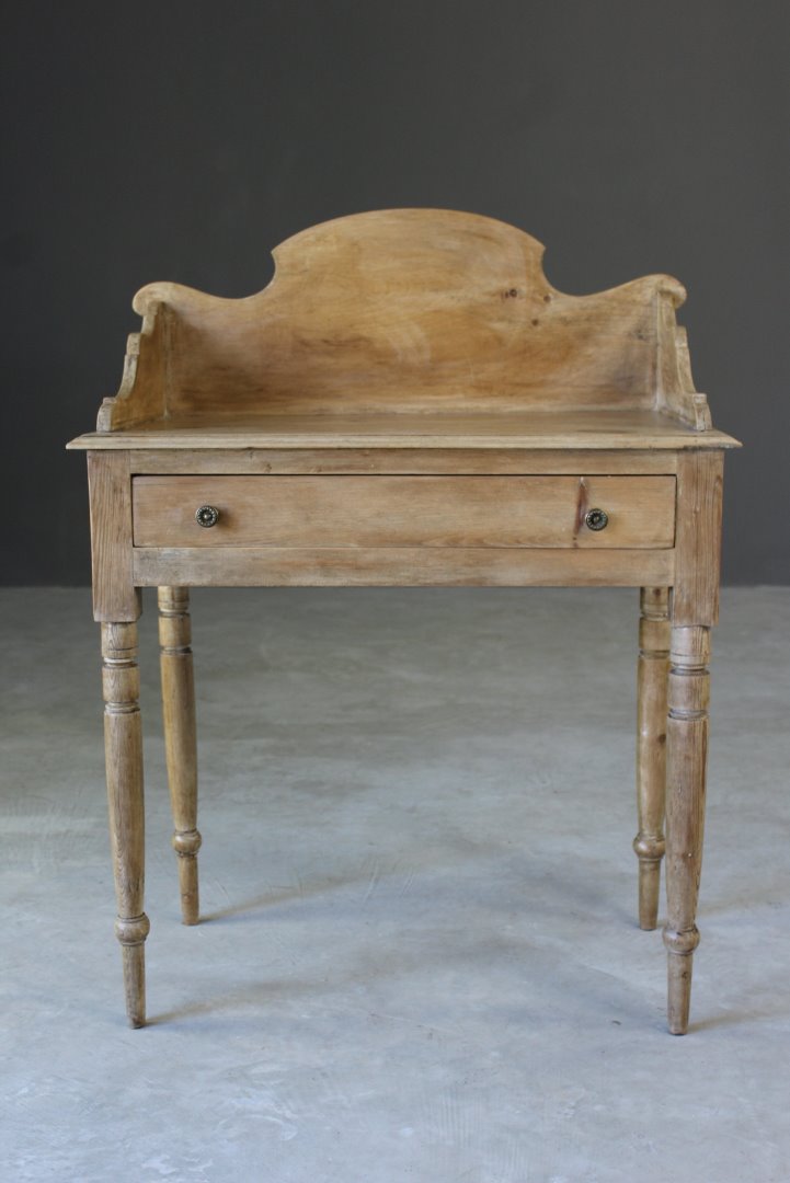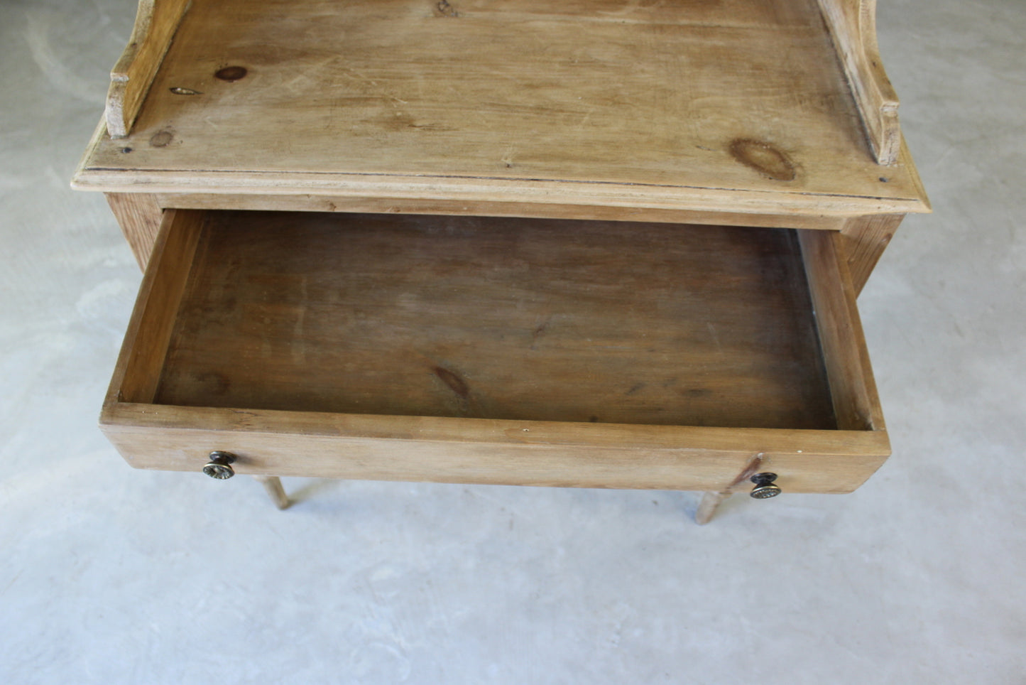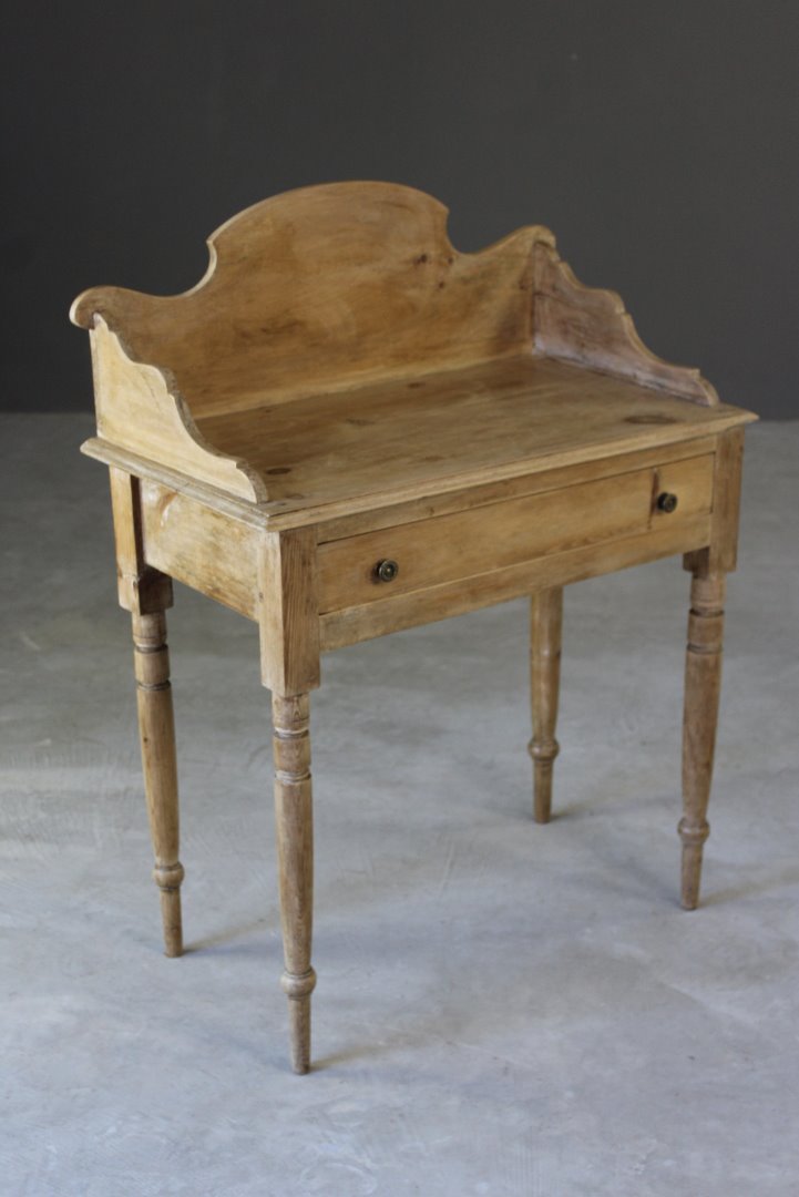 Antique pine washstand. Victorian stripped and waxed small pine washstand with shaped gallery, single drawer on turned legs.