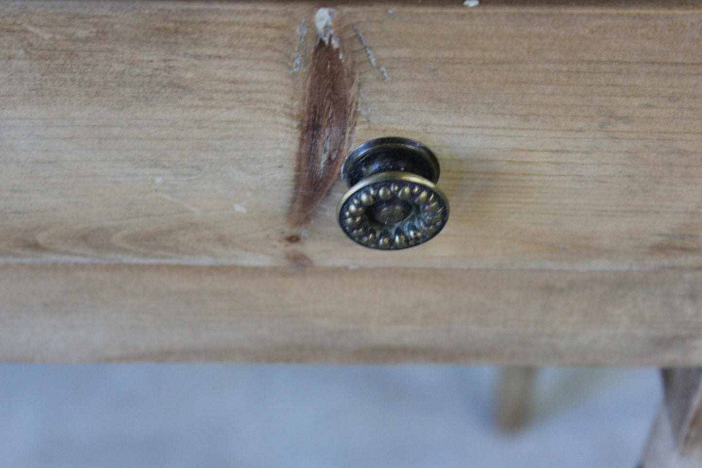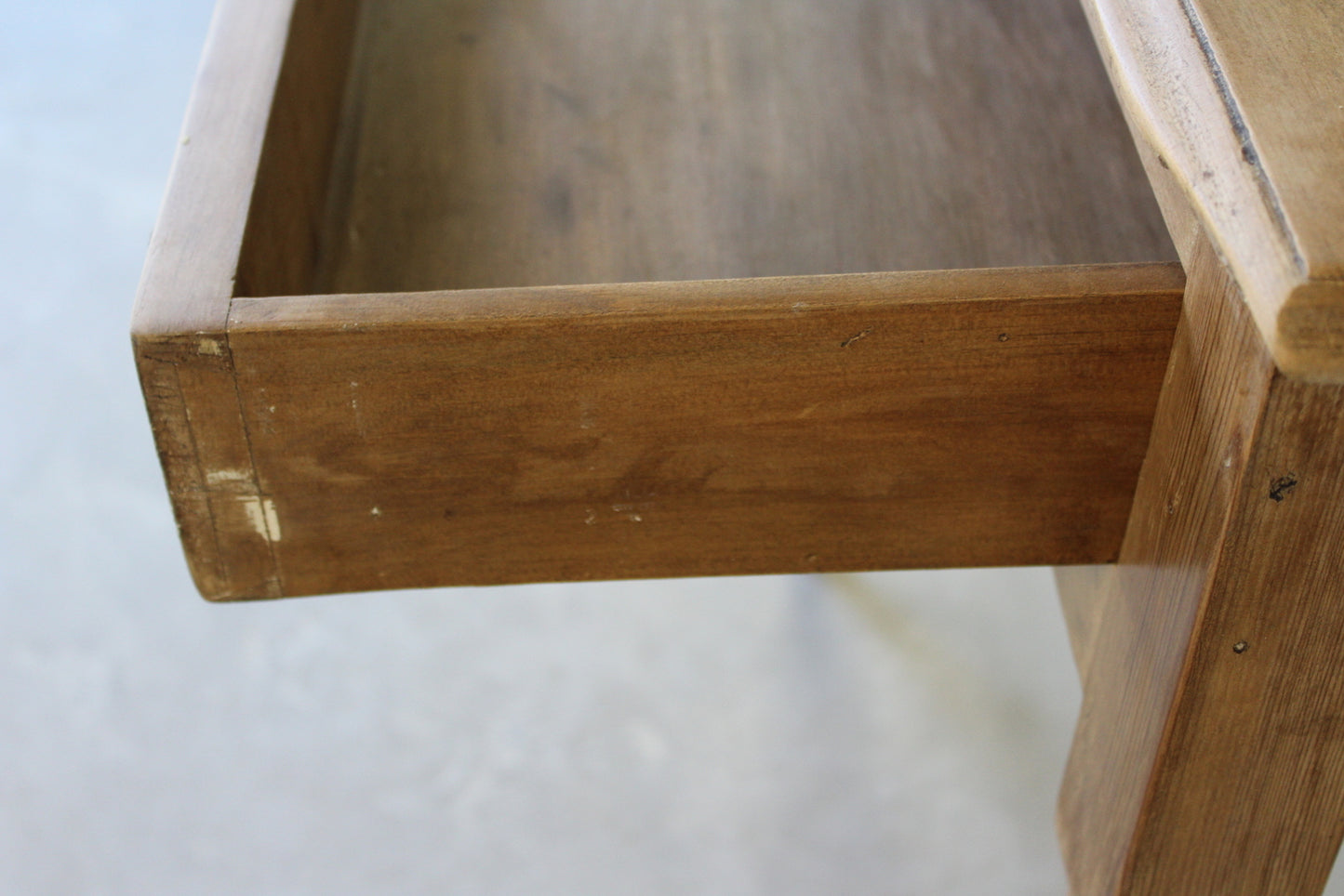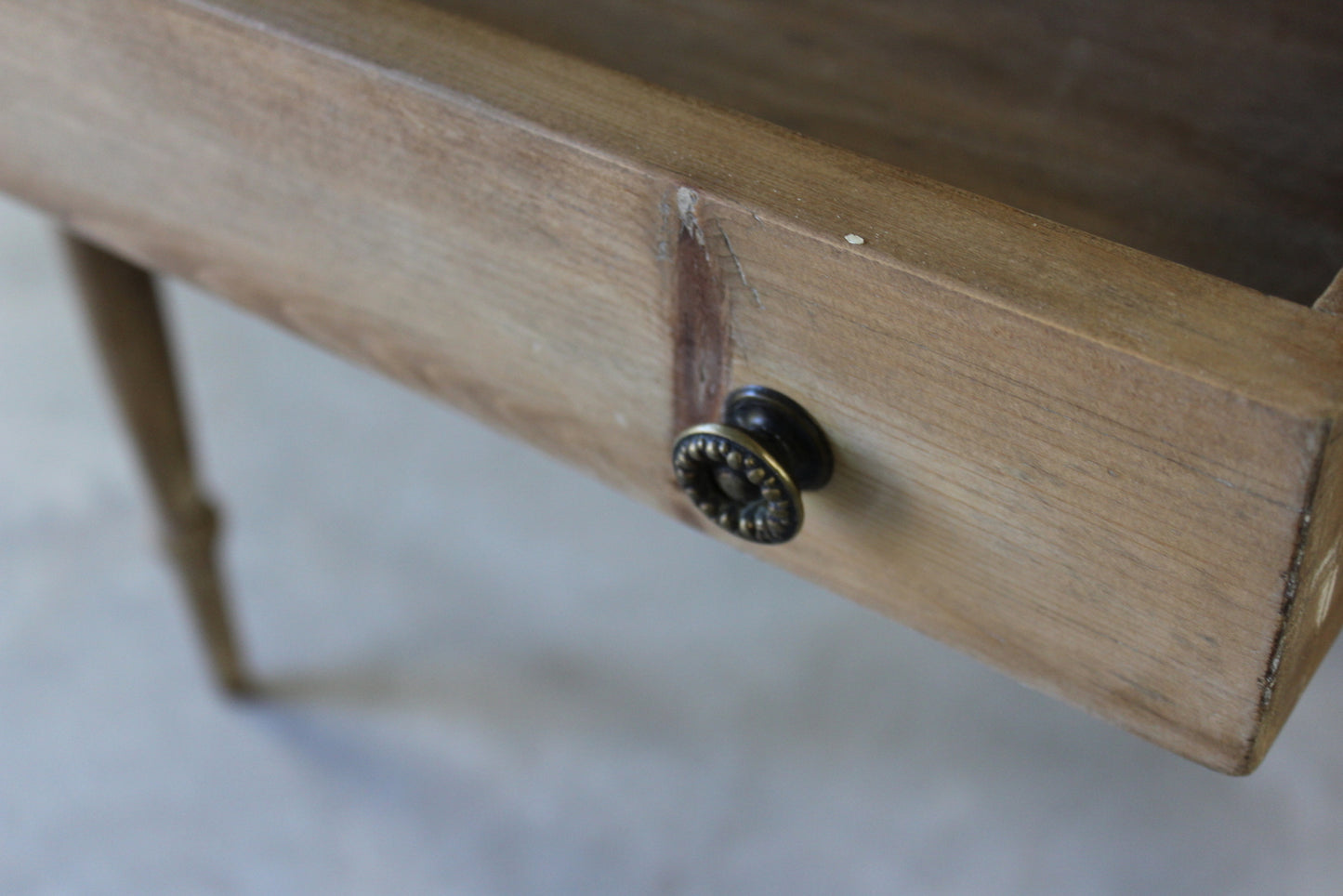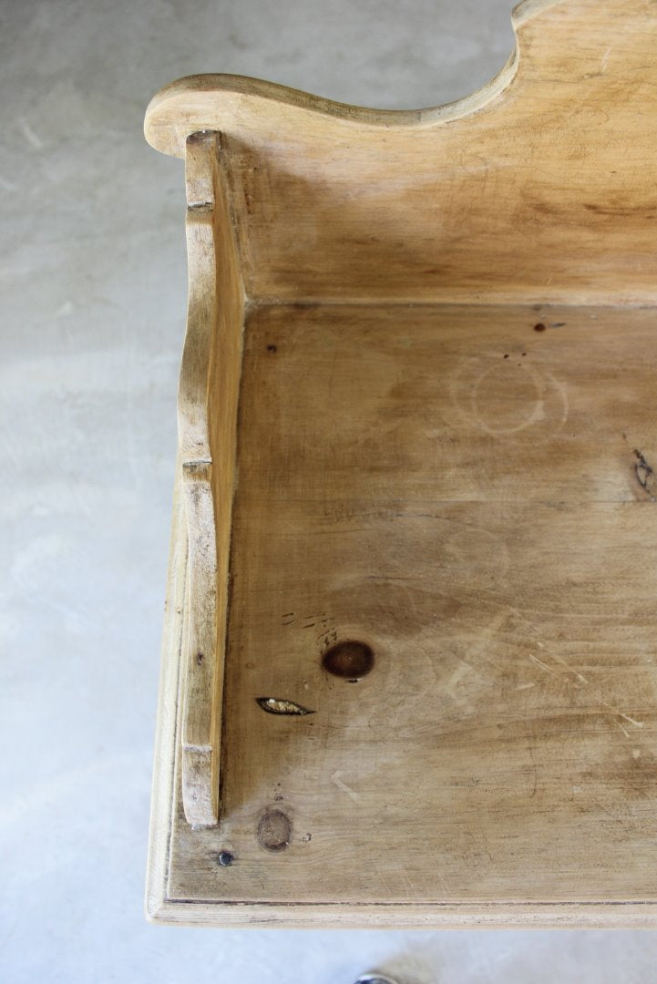 Antique pine washstand. Victorian stripped and waxed small pine washstand with shaped gallery, single drawer on turned legs.