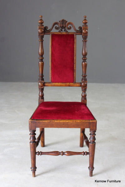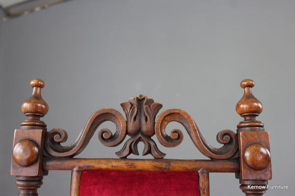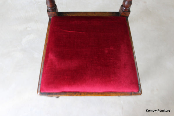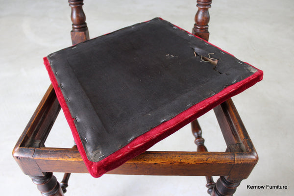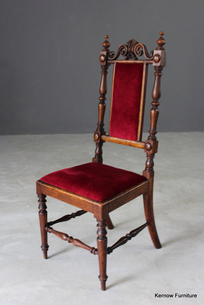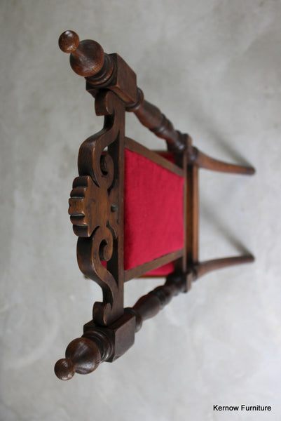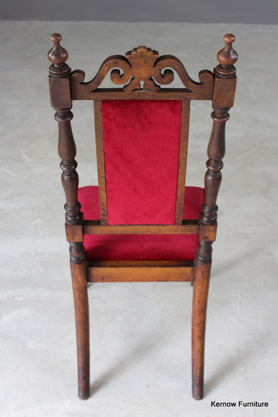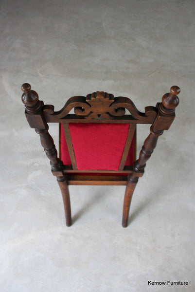 Antique Victorian childs chair. Small antique childs chair with red upholstered drop in seat pad and back rest with carved & turned frame.