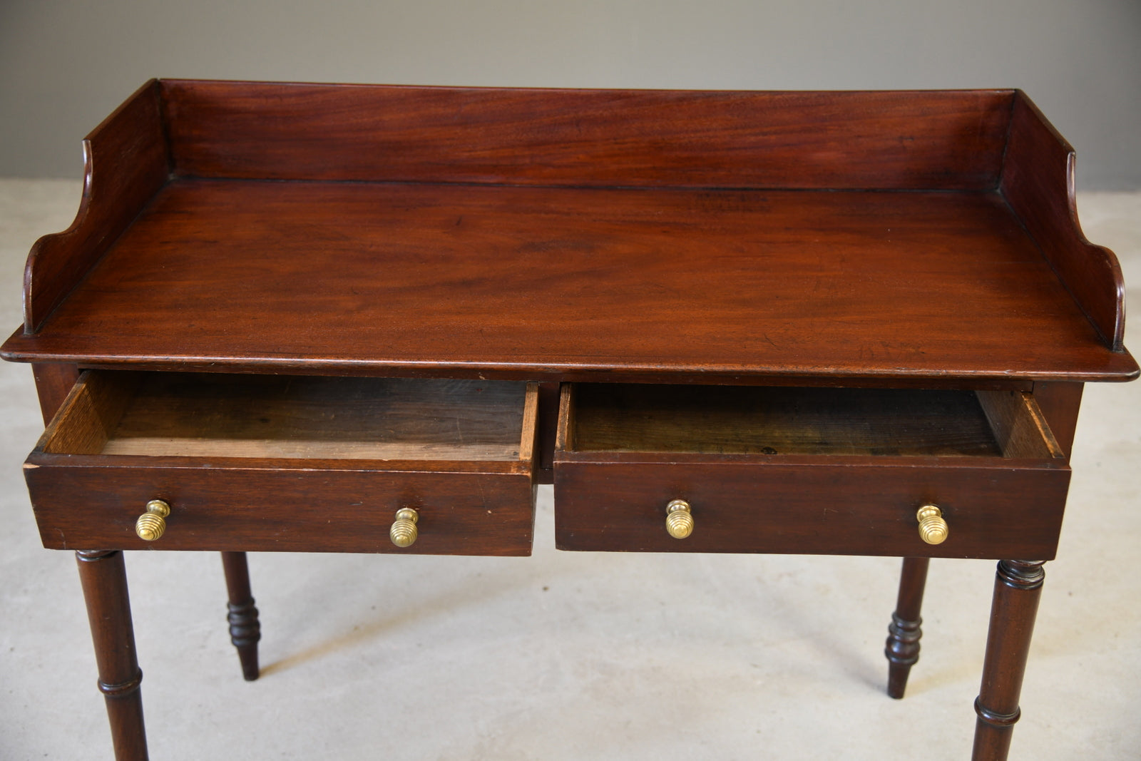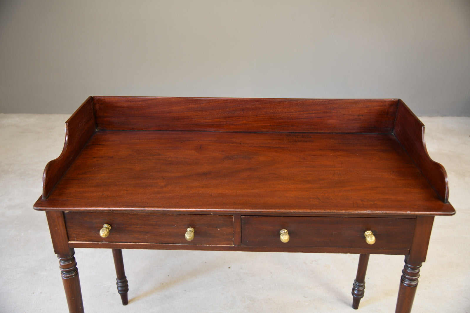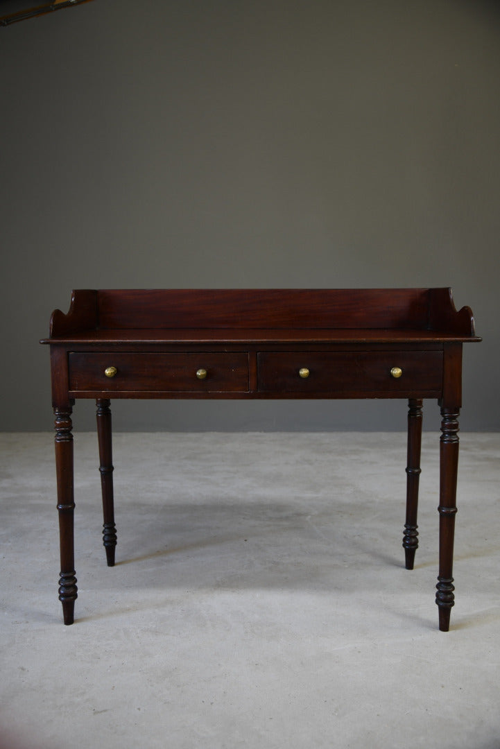 Victorian Mahogany Desk / Washstand. Antique Victorian mahogany washstand with pair of drawers in the frieze with later brass handles, raised gallery back on turned tapering legs.