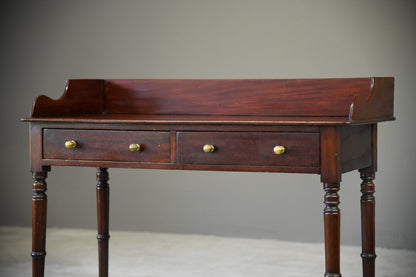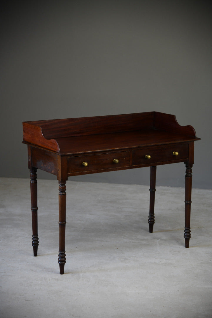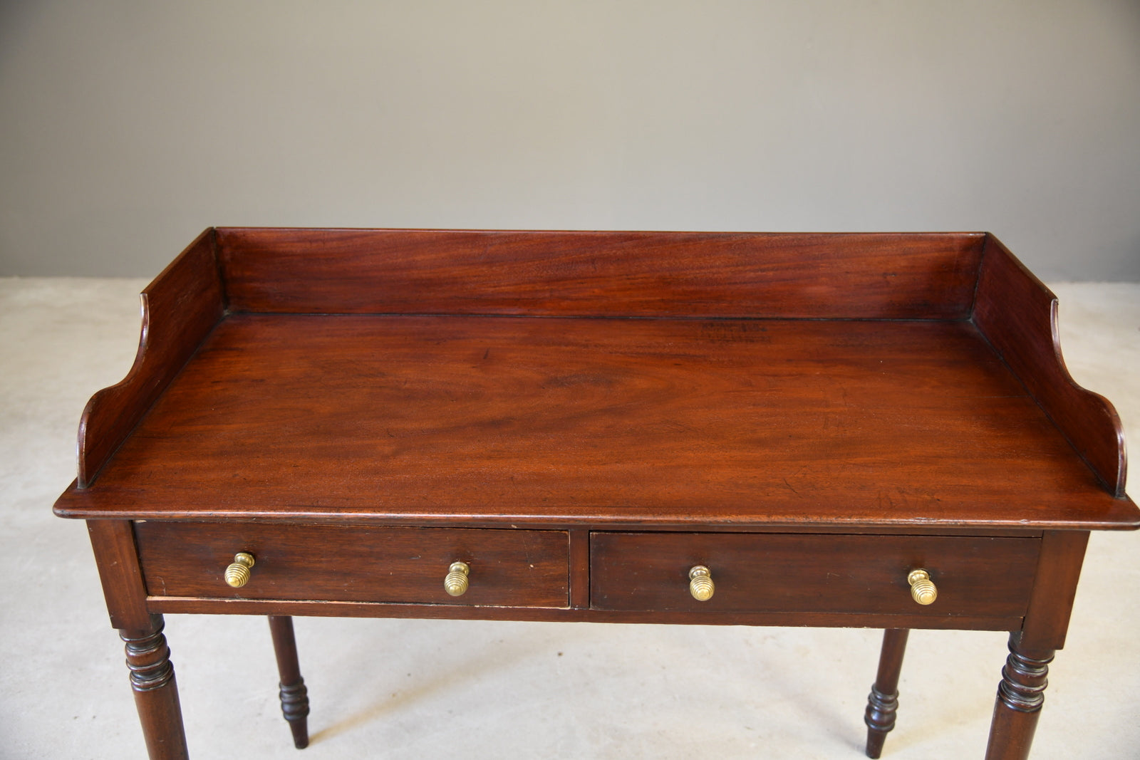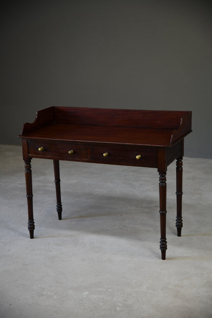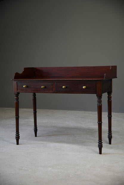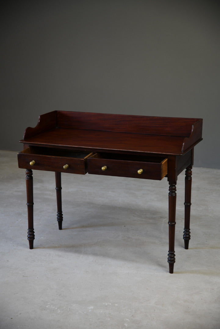 Victorian Mahogany Desk / Washstand. Antique Victorian mahogany washstand with pair of drawers in the frieze with later brass handles, raised gallery back on turned tapering legs.