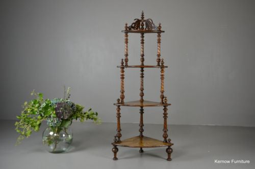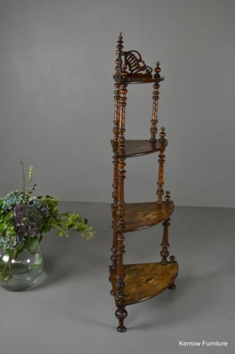 Antique Victorian Ornate Inlaid Walnut Corner Whatnot Shelving