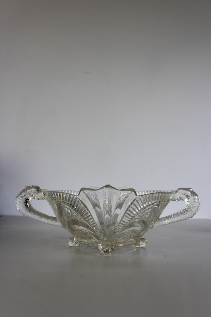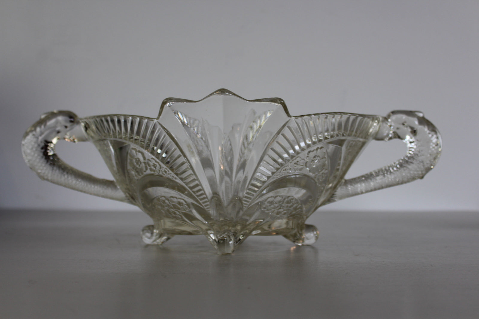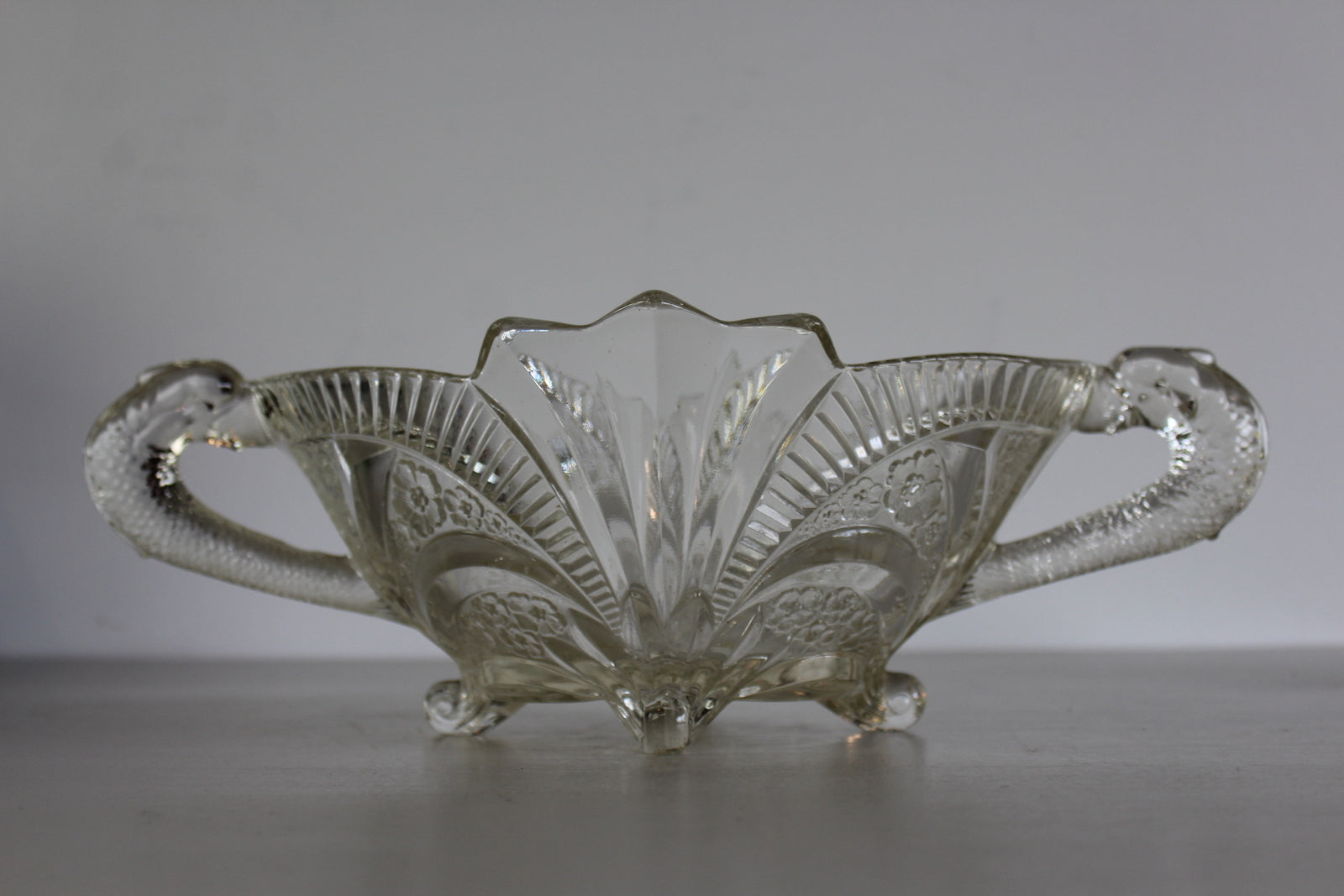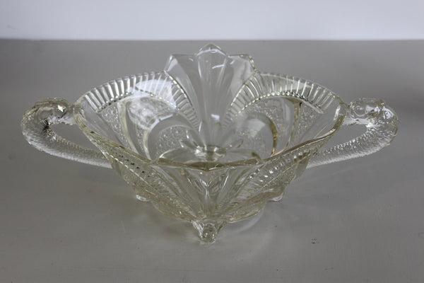 Art Deco Glass Bowl. Early 20th Century clear pressed glass fruit / centre bowl with serpent handles.
