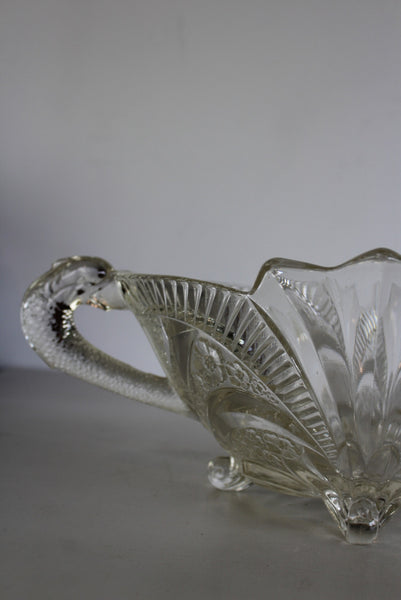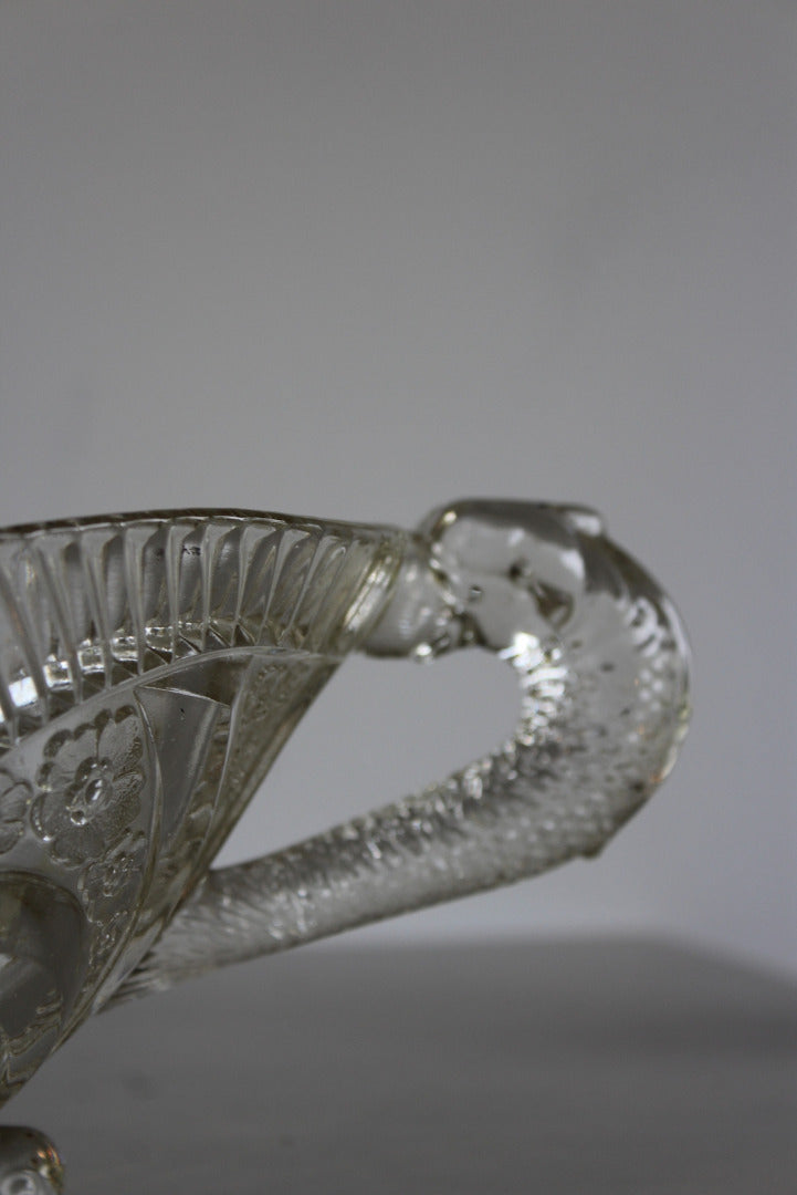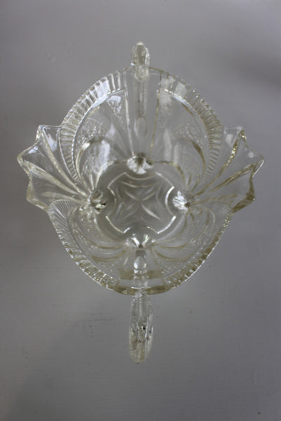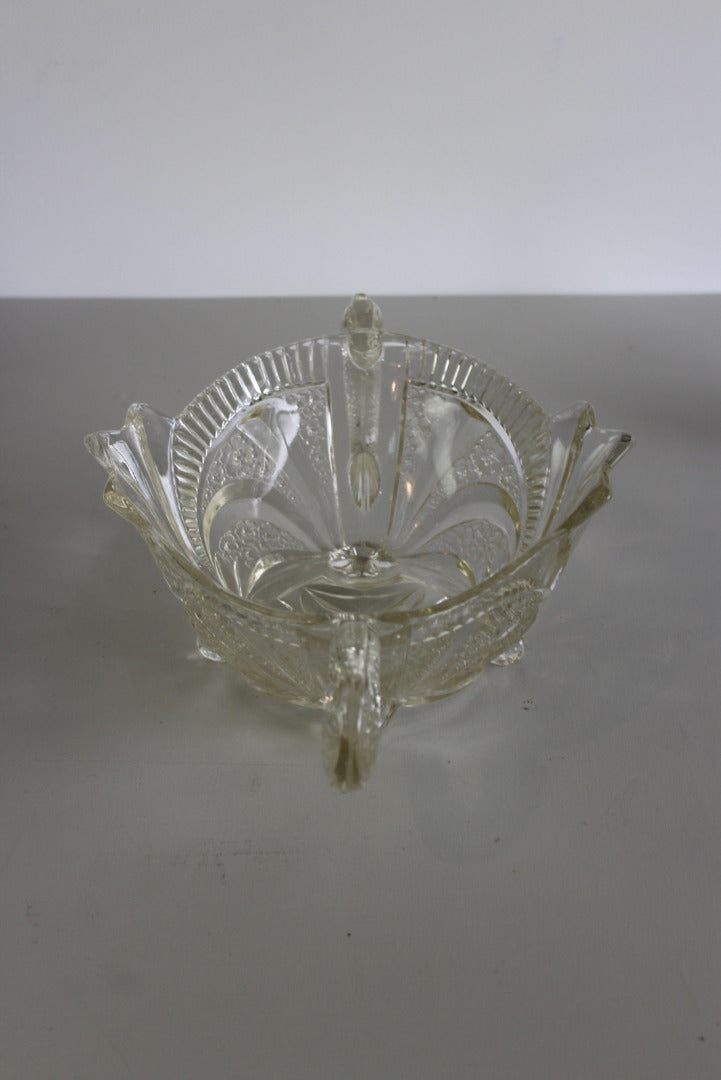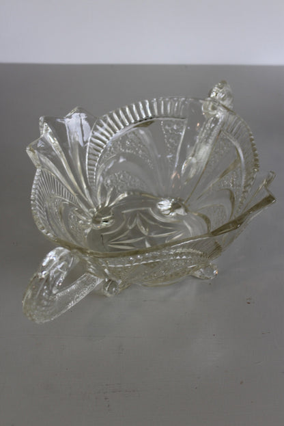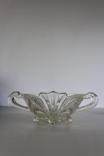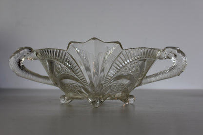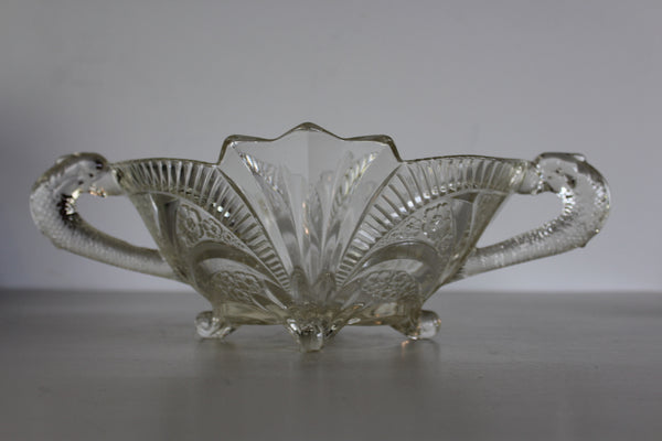 Art Deco Glass Bowl. Early 20th Century clear pressed glass fruit / centre bowl with serpent handles.