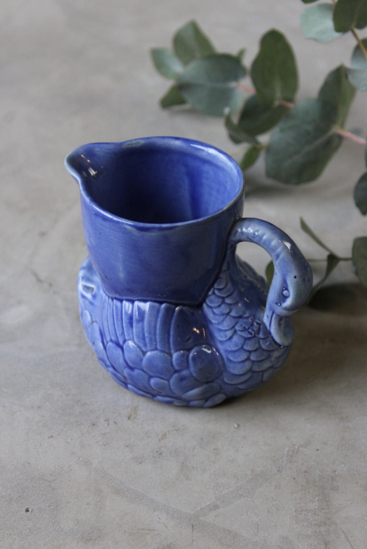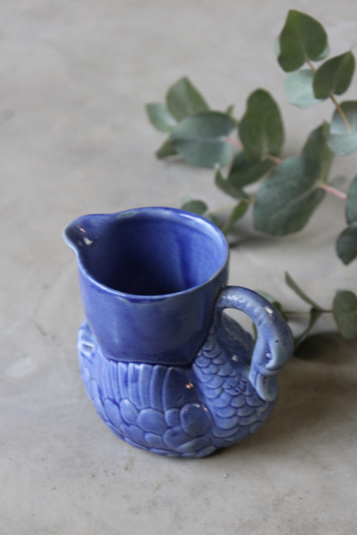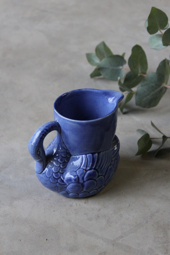 Blue swan jug. Vintage blue ceramic small milk jug.