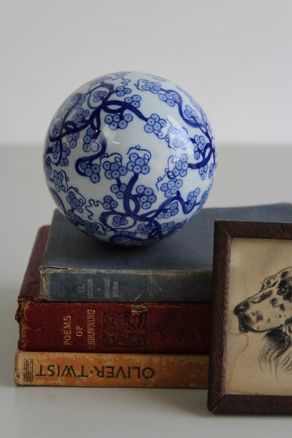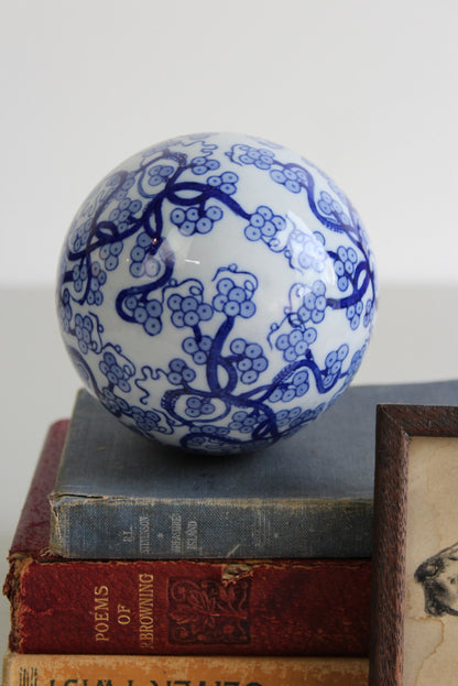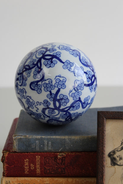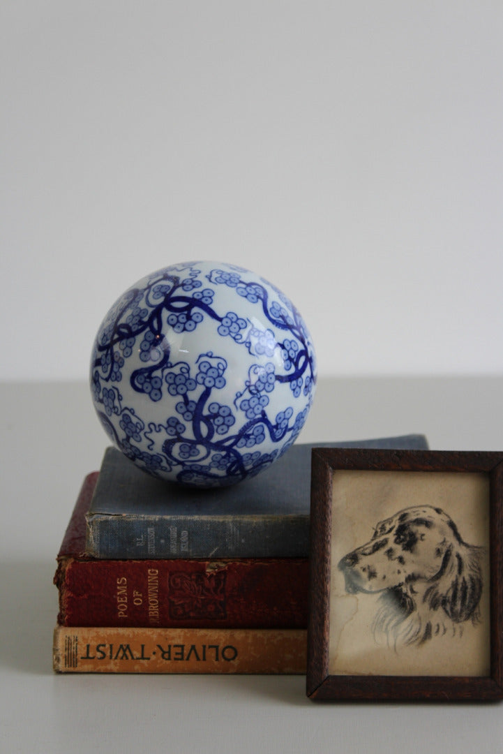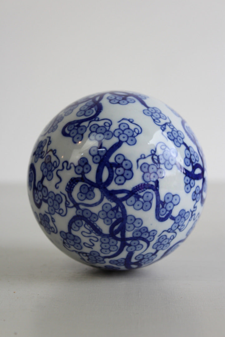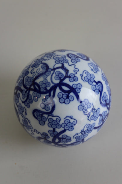 Blue & white decorative ball / carpet ball, blue on white ceramic.
