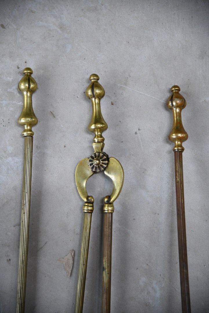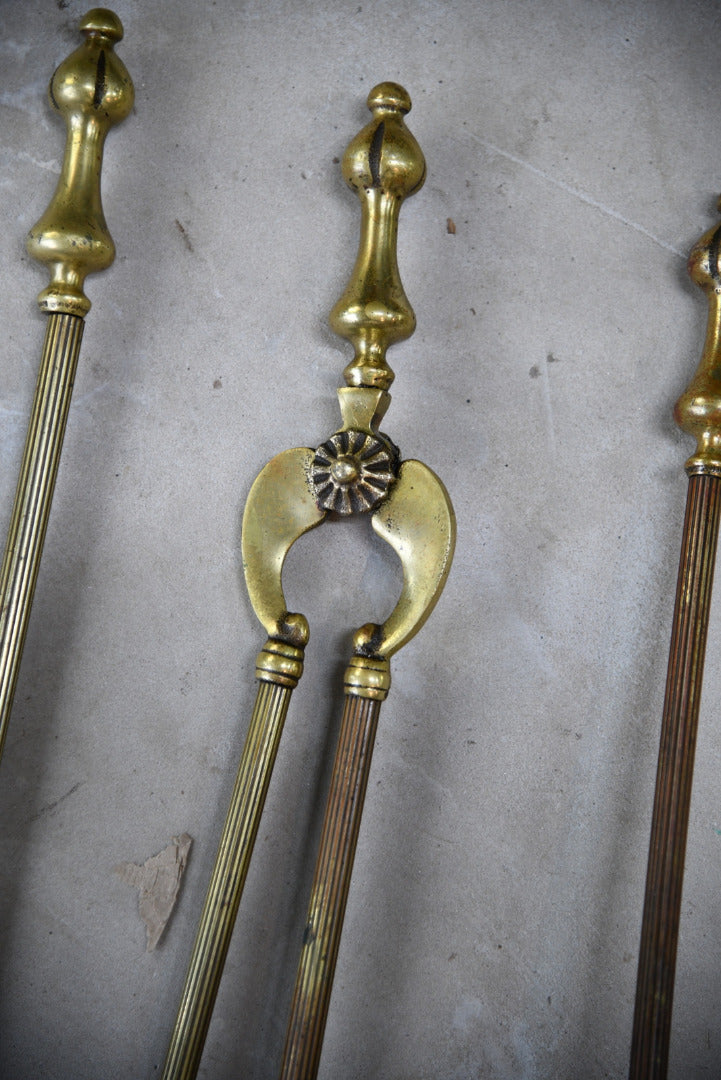 Brass Fire Set - Tongs Poker & Shovel, three piece companion set.
