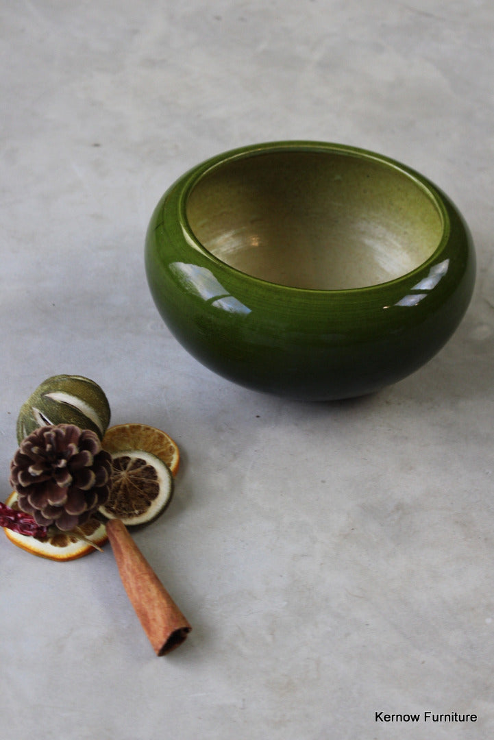 Bretby green art pottery bowl. Early 20th Century glazed green bowl. Find more vintage home accessories here.