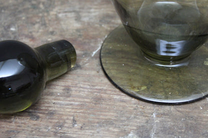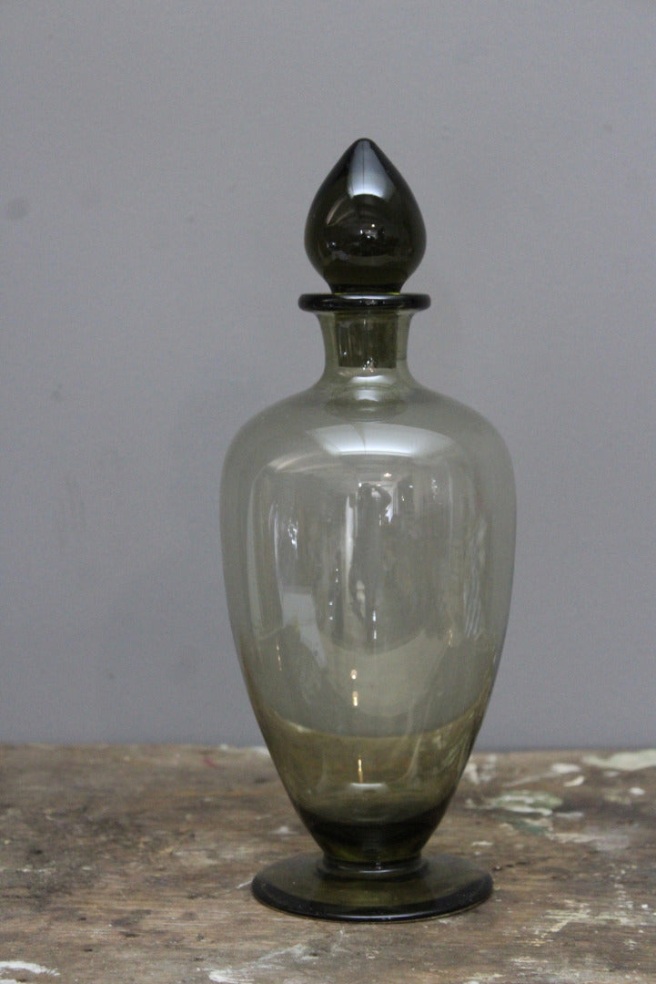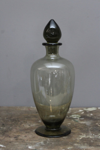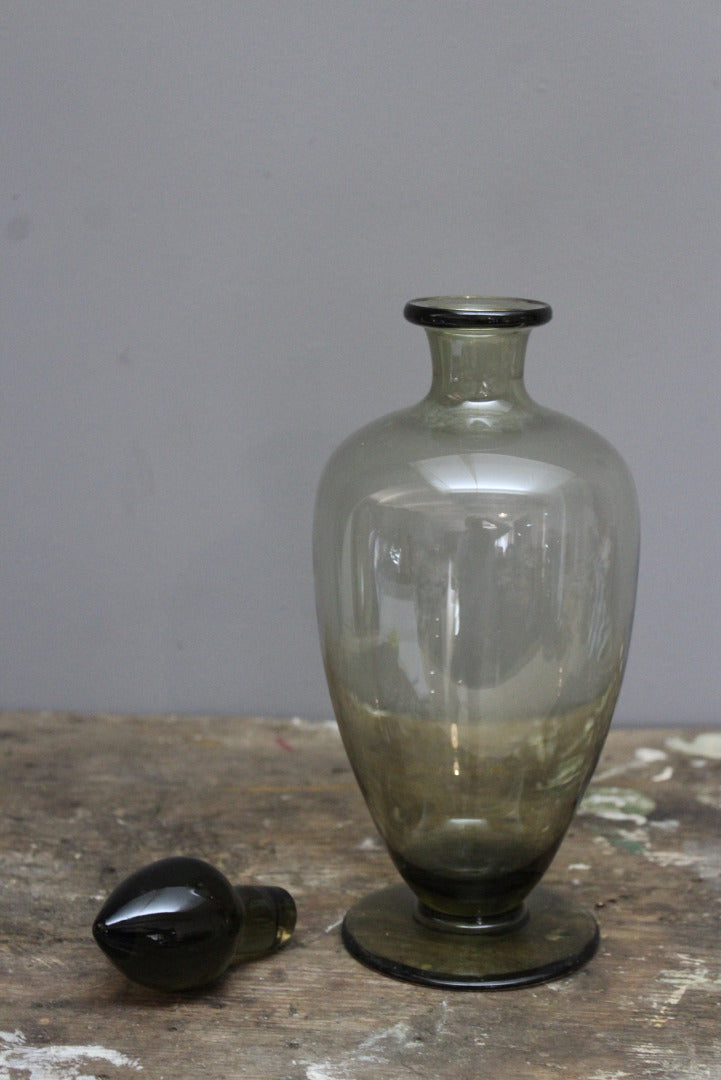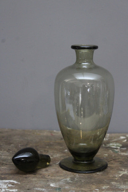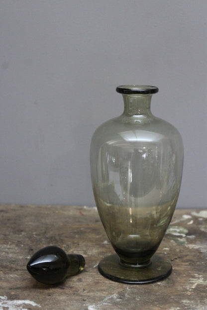 Brown glass decanter. Mid Century brown glass bottle and stopper.