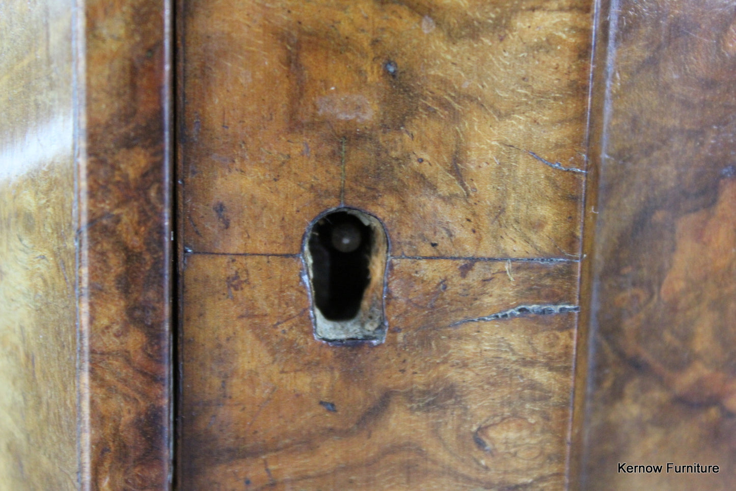 Condition: Good, some general age and fading to the veneer, historic repair to the veneer, some minor losses and chips to the veneer - please refer to the photos, small piece of edging bead missing, one brass escutcheon missing.