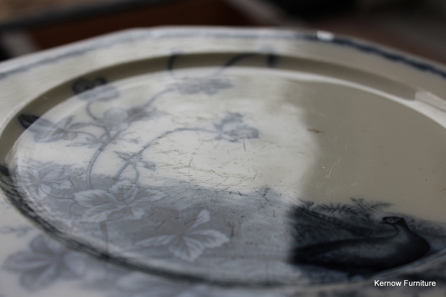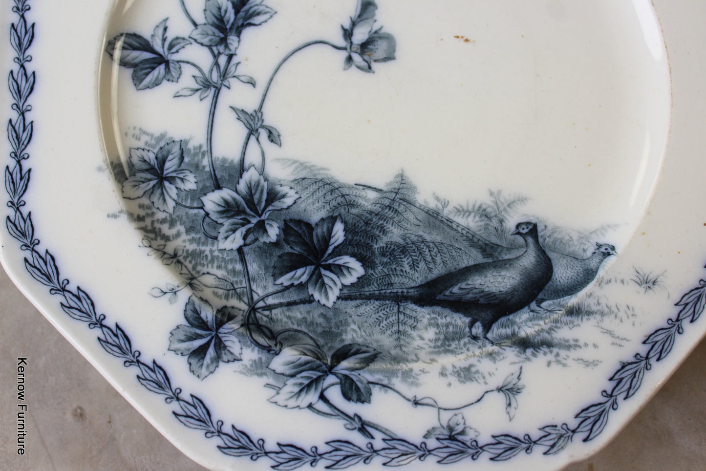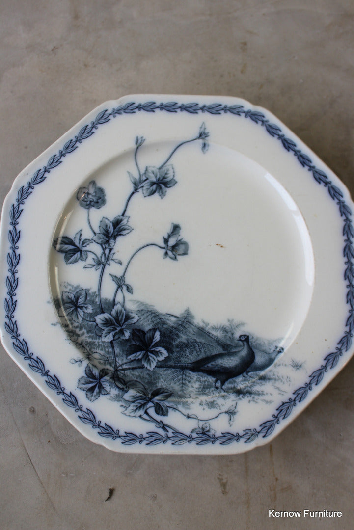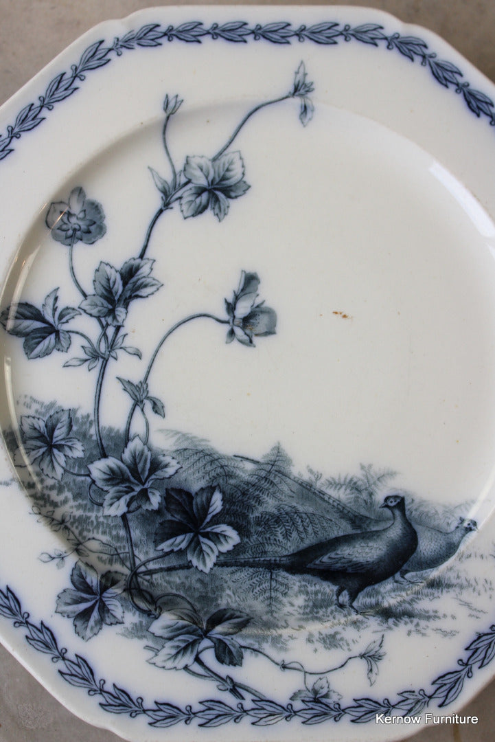 BWM & Co Variete Victorian cake stand. Blue and white pheasant cake plate.